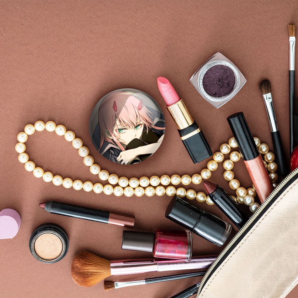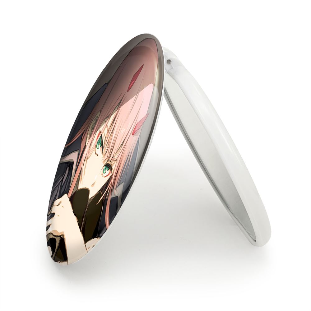 آینه های تاشو زیروتو انیمه دارلینگ در فرنکس خندالو، از جنس پلاستیک فشرده ABS تولید شده و به رنگ سفید می باشد. یکی از آینه ها ابعاد واقعی را نشان داده و دیگری با قابلیت بزرگنمایی، جزئیات را بهتر نمایش می دهد. ابعاد هر یک از آینه ها، دایره ای به قطر 7.5 سانت می باشد که نه خیلی بزرگ و غیر قابل استفاده در کیف آرایشی ست و نه خیلی کوچک که تصویر خاصی در آن مشاهده نشود. آینه تاشو زیروتو انیمه دارلینگ در فرنکس سایزی استاندارد و کارآمد دارد و در هر کیفی جا میگیرد. چاپ طرح بوسیله چاپگرهای دیجیتال شش رنگ با شفافیت و کیفیتی مثال زدنی بر روی یک وجه از بدنه ی آینه انجام گرفته و با روکش لمینت حرارتی پوشیده شده که در مقابل آسیب و خط و خش مقاوم بوده و کیفیت بالایی دارد. درب آینه بوسیله قفل بدنه ی آن، باز نمی ماند و کاملا بسته می شود و مناسب قرار گیری در کیف لوازم آرایش و کیف های کوچک دستی نیز هست. آینه های تاشو زیروتو انیمه دارلینگ در فرنکس خندالو با تنوع طرحی بسیار بالا، سلیقه هر نوع مخاطبی را تامین میکند.