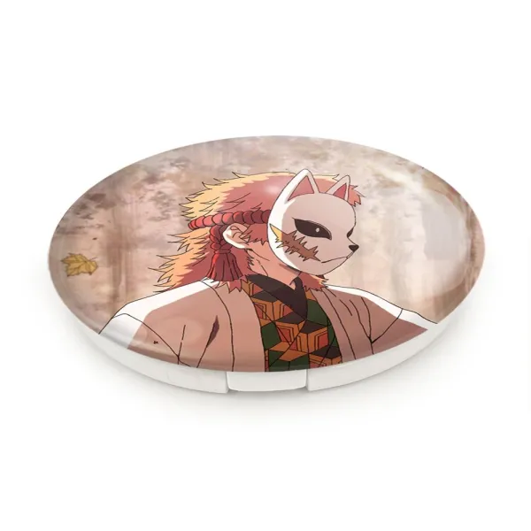 آینه های تاشو سابیتو انیمه شیطان کش خندالو، از جنس پلاستیک فشرده ABS تولید شده و به رنگ سفید می باشد. یکی از آینه ها ابعاد واقعی را نشان داده و دیگری با قابلیت بزرگنمایی، جزئیات را بهتر نمایش می دهد. ابعاد هر یک از آینه ها، دایره ای به قطر 7.5 سانت می باشد که نه خیلی بزرگ و غیر قابل استفاده در کیف آرایشی ست و نه خیلی کوچک که تصویر خاصی در آن مشاهده نشود. آینه تاشو سابیتو انیمه شیطان کش سایزی استاندارد و کارآمد دارد و در هر کیفی جا میگیرد. چاپ طرح بوسیله چاپگرهای دیجیتال شش رنگ با شفافیت و کیفیتی مثال زدنی بر روی یک وجه از بدنه ی آینه انجام گرفته و با روکش لمینت حرارتی پوشیده شده که در مقابل آسیب و خط و خش مقاوم بوده و کیفیت بالایی دارد. درب آینه بوسیله قفل بدنه ی آن، باز نمی ماند و کاملا بسته می شود و مناسب قرار گیری در کیف لوازم آرایش و کیف های کوچک دستی نیز هست. آینه های تاشو سابیتو انیمه شیطان کش خندالو با تنوع طرحی بسیار بالا، سلیقه هر نوع مخاطبی را تامین میکند.