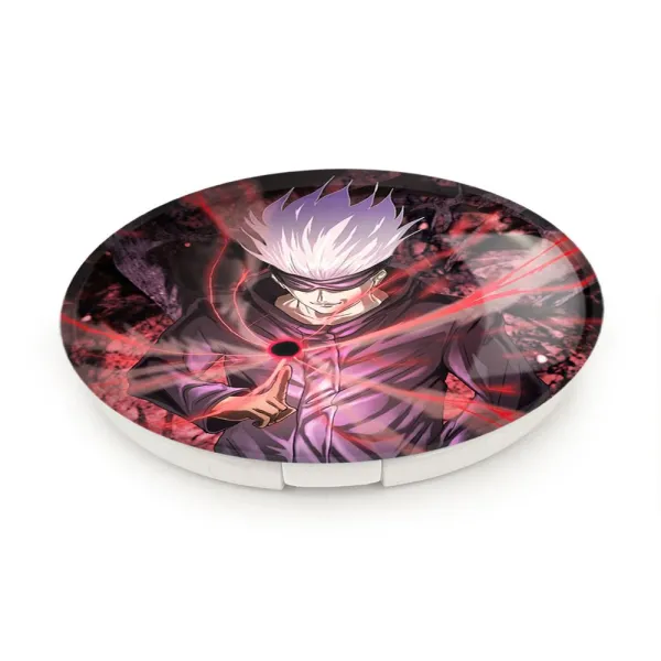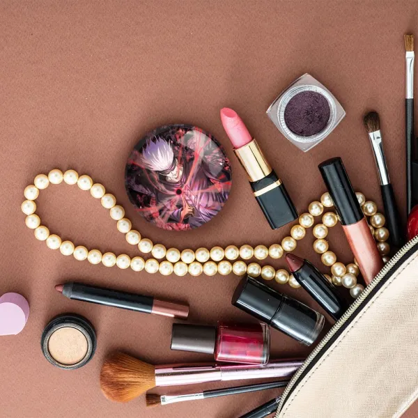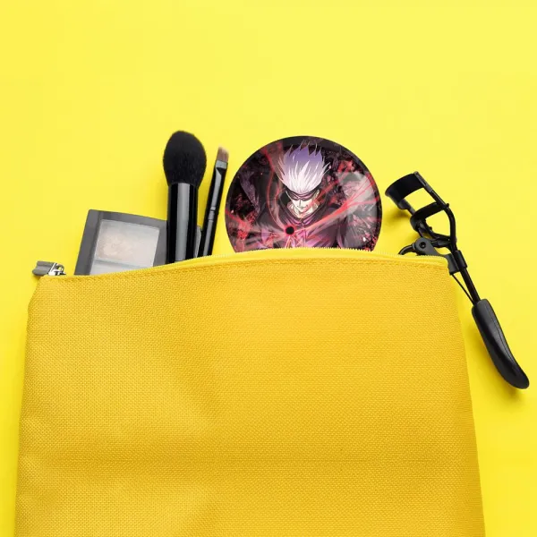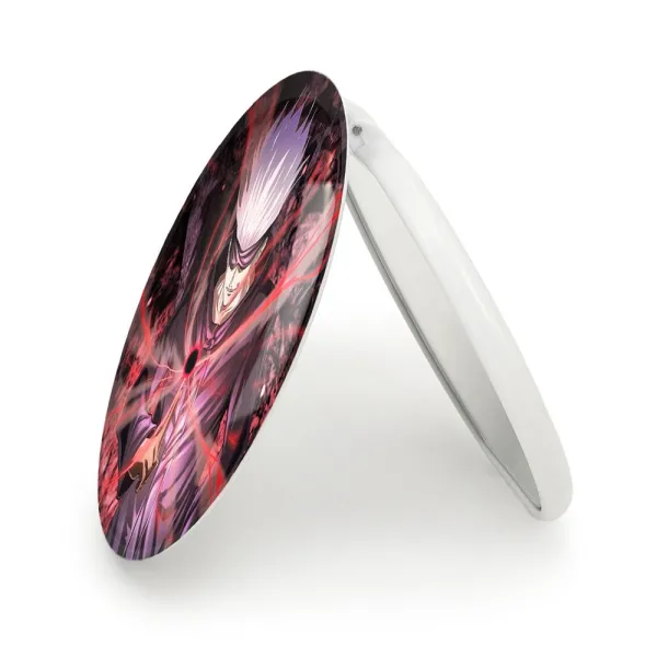 آینه های تاشو ساتورو گوجو انیمه جوجوتسو کایزن خندالو، از جنس پلاستیک فشرده ABS تولید شده و به رنگ سفید می باشد. یکی از آینه ها ابعاد واقعی را نشان داده و دیگری با قابلیت بزرگنمایی، جزئیات را بهتر نمایش می دهد. ابعاد هر یک از آینه ها، دایره ای به قطر 7.5 سانت می باشد که نه خیلی بزرگ و غیر قابل استفاده در کیف آرایشی ست و نه خیلی کوچک که تصویر خاصی در آن مشاهده نشود. آینه تاشو ساتورو گوجو انیمه جوجوتسو کایزن سایزی استاندارد و کارآمد دارد و در هر کیفی جا میگیرد. چاپ طرح بوسیله چاپگرهای دیجیتال شش رنگ با شفافیت و کیفیتی مثال زدنی بر روی یک وجه از بدنه ی آینه انجام گرفته و با روکش لمینت حرارتی پوشیده شده که در مقابل آسیب و خط و خش مقاوم بوده و کیفیت بالایی دارد. درب آینه بوسیله قفل بدنه ی آن، باز نمی ماند و کاملا بسته می شود و مناسب قرار گیری در کیف لوازم آرایش و کیف های کوچک دستی نیز هست. آینه های تاشو ساتورو گوجو انیمه جوجوتسو کایزن خندالو با تنوع طرحی بسیار بالا، سلیقه هر نوع مخاطبی را تامین میکند.