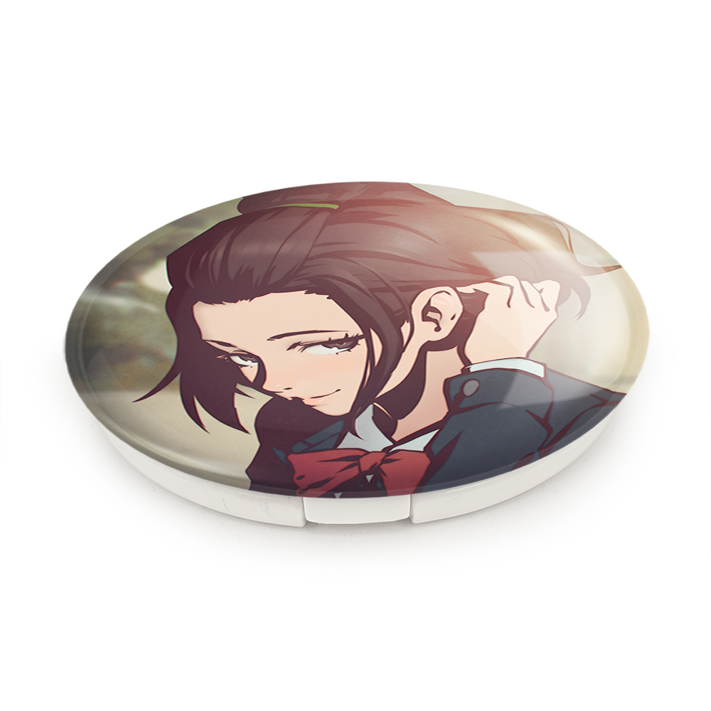 آینه های تاشو ساتومی انیمه انگل خندالو، از جنس پلاستیک فشرده ABS تولید شده و به رنگ سفید می باشد. یکی از آینه ها ابعاد واقعی را نشان داده و دیگری با قابلیت بزرگنمایی، جزئیات را بهتر نمایش می دهد. ابعاد هر یک از آینه ها، دایره ای به قطر 7.5 سانت می باشد که نه خیلی بزرگ و غیر قابل استفاده در کیف آرایشی ست و نه خیلی کوچک که تصویر خاصی در آن مشاهده نشود. آینه تاشو ساتومی انیمه انگل سایزی استاندارد و کارآمد دارد و در هر کیفی جا میگیرد. چاپ طرح بوسیله چاپگرهای دیجیتال شش رنگ با شفافیت و کیفیتی مثال زدنی بر روی یک وجه از بدنه ی آینه انجام گرفته و با روکش لمینت حرارتی پوشیده شده که در مقابل آسیب و خط و خش مقاوم بوده و کیفیت بالایی دارد. درب آینه بوسیله قفل بدنه ی آن، باز نمی ماند و کاملا بسته می شود و مناسب قرار گیری در کیف لوازم آرایش و کیف های کوچک دستی نیز هست. آینه های تاشو ساتومی انیمه انگل خندالو با تنوع طرحی بسیار بالا، سلیقه هر نوع مخاطبی را تامین میکند.