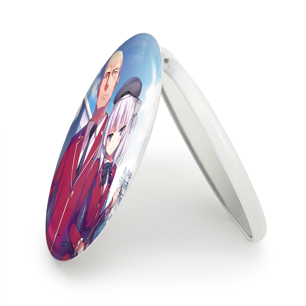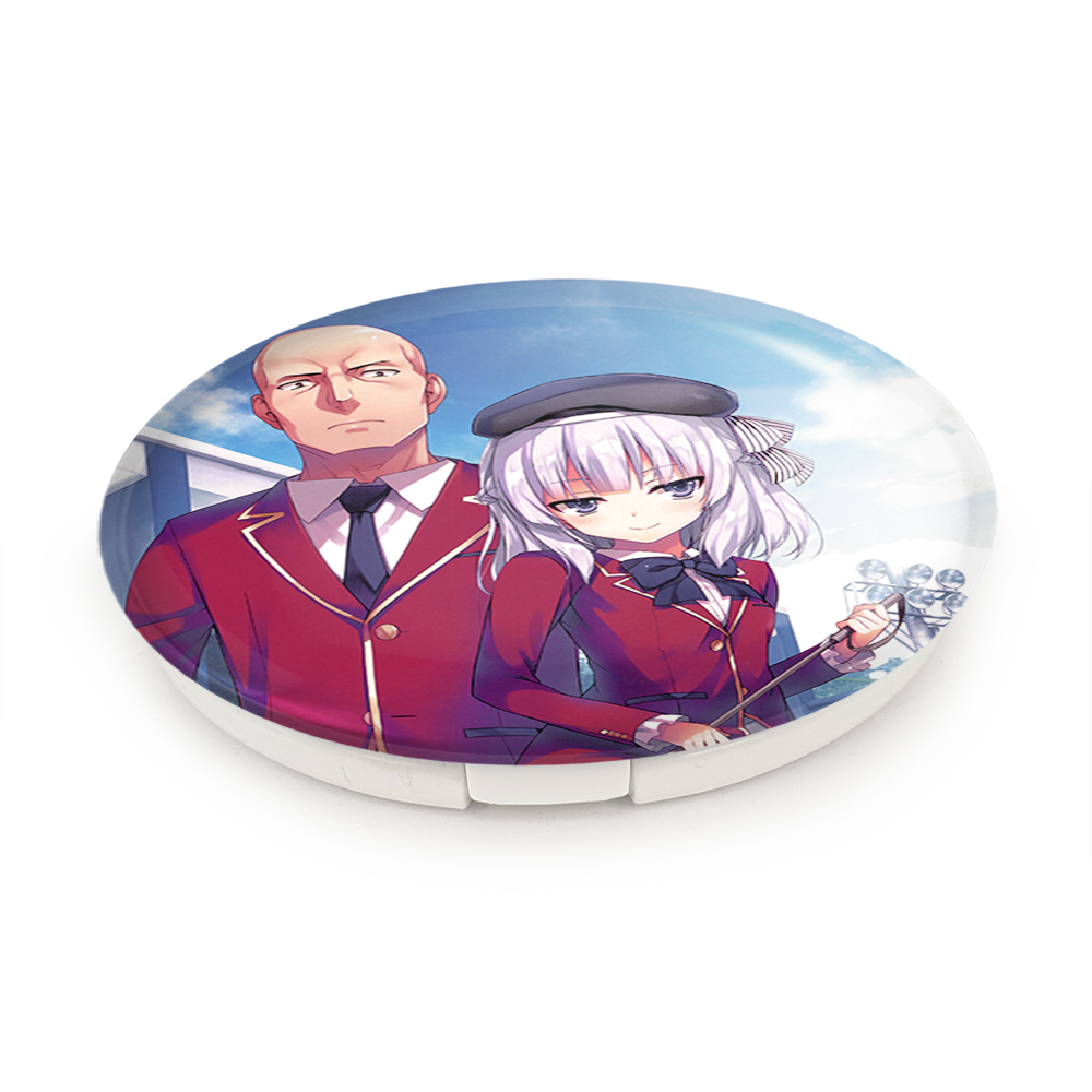 آینه های تاشو ساکایاناگی انیمه کلاس نخبگان خندالو، از جنس پلاستیک فشرده ABS تولید شده و به رنگ سفید می باشد. یکی از آینه ها ابعاد واقعی را نشان داده و دیگری با قابلیت بزرگنمایی، جزئیات را بهتر نمایش می دهد. ابعاد هر یک از آینه ها، دایره ای به قطر 7.5 سانت می باشد که نه خیلی بزرگ و غیر قابل استفاده در کیف آرایشی ست و نه خیلی کوچک که تصویر خاصی در آن مشاهده نشود. آینه تاشو ساکایاناگی انیمه کلاس نخبگان سایزی استاندارد و کارآمد دارد و در هر کیفی جا میگیرد. چاپ طرح بوسیله چاپگرهای دیجیتال شش رنگ با شفافیت و کیفیتی مثال زدنی بر روی یک وجه از بدنه ی آینه انجام گرفته و با روکش لمینت حرارتی پوشیده شده که در مقابل آسیب و خط و خش مقاوم بوده و کیفیت بالایی دارد. درب آینه بوسیله قفل بدنه ی آن، باز نمی ماند و کاملا بسته می شود و مناسب قرار گیری در کیف لوازم آرایش و کیف های کوچک دستی نیز هست. آینه های تاشو ساکایاناگی انیمه کلاس نخبگان خندالو با تنوع طرحی بسیار بالا، سلیقه هر نوع مخاطبی را تامین میکند.