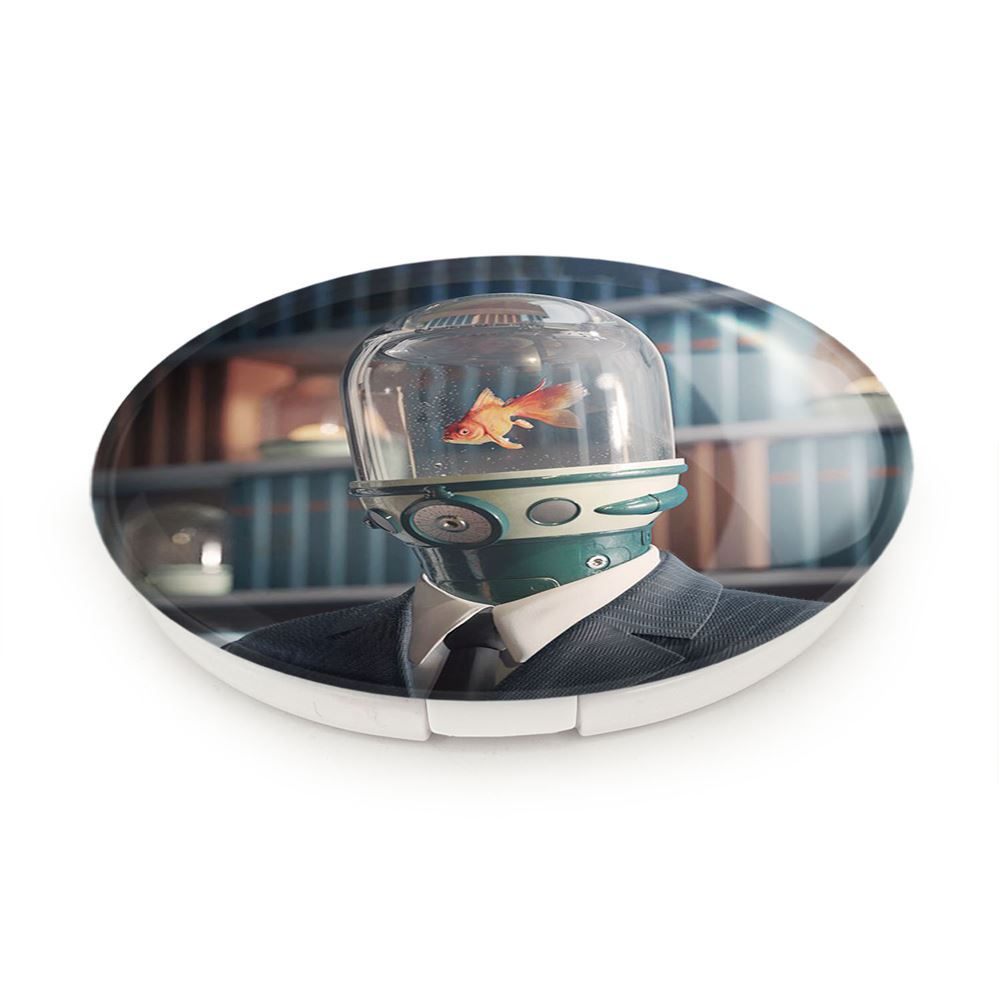 آینه های تاشو سریال آکادمی آمبرلا The Umberella Academy خندالو، از جنس پلاستیک فشرده ABS تولید شده و به رنگ سفید می باشد. یکی از آینه ها ابعاد واقعی را نشان داده و دیگری با قابلیت بزرگنمایی، جزئیات را بهتر نمایش می دهد. ابعاد هر یک از آینه ها، دایره ای به قطر 7.5 سانت می باشد که نه خیلی بزرگ و غیر قابل استفاده در کیف آرایشی ست و نه خیلی کوچک که تصویر خاصی در آن مشاهده نشود. آینه تاشو سریال آکادمی آمبرلا The Umberella Academy سایزی استاندارد و کارآمد دارد و در هر کیفی جا میگیرد. چاپ طرح بوسیله چاپگرهای دیجیتال شش رنگ با شفافیت و کیفیتی مثال زدنی بر روی یک وجه از بدنه ی آینه انجام گرفته و با روکش لمینت حرارتی پوشیده شده که در مقابل آسیب و خط و خش مقاوم بوده و کیفیت بالایی دارد. درب آینه بوسیله قفل بدنه ی آن، باز نمی ماند و کاملا بسته می شود و مناسب قرار گیری در کیف لوازم آرایش و کیف های کوچک دستی نیز هست. آینه های تاشو سریال آکادمی آمبرلا The Umberella Academy خندالو با تنوع طرحی بسیار بالا، سلیقه هر نوع مخاطبی را تامین میکند.