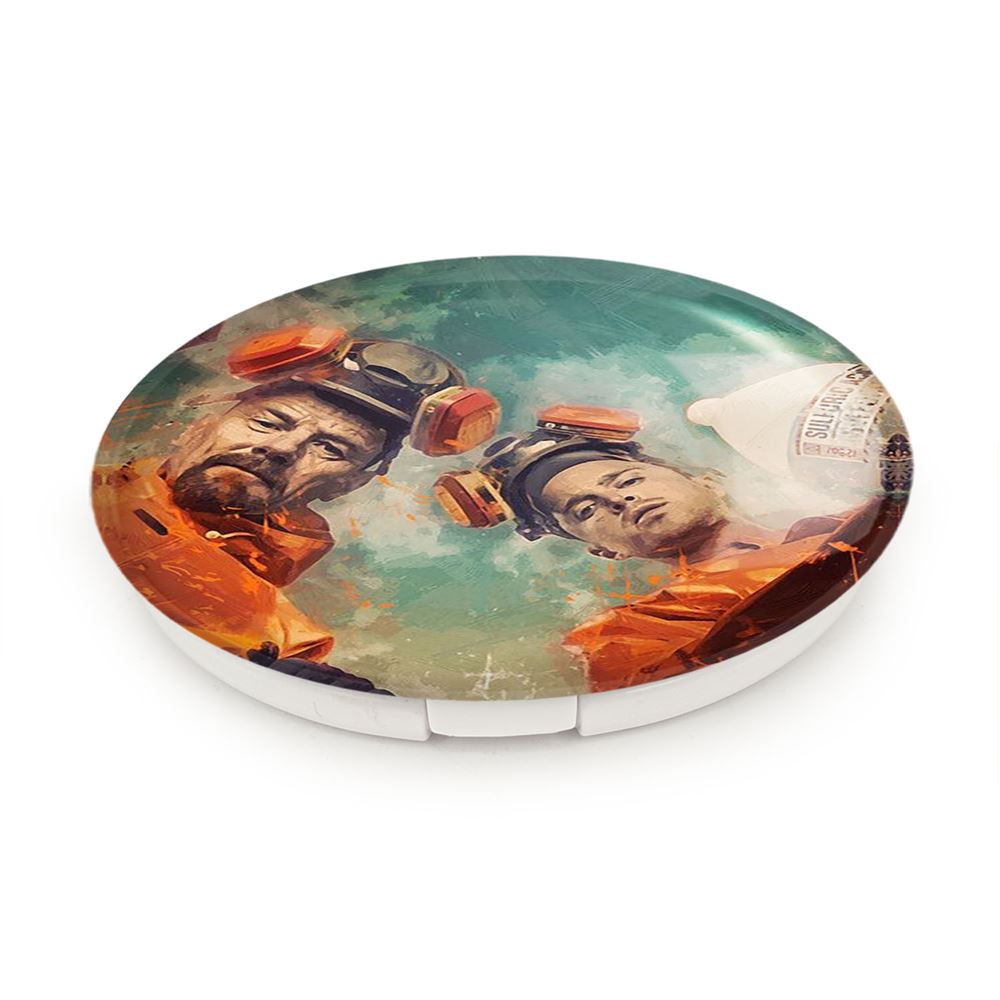 آینه های تاشو سریال بریکینگ بد Breaking Bad خندالو، از جنس پلاستیک فشرده ABS تولید شده و به رنگ سفید می باشد. یکی از آینه ها ابعاد واقعی را نشان داده و دیگری با قابلیت بزرگنمایی، جزئیات را بهتر نمایش می دهد.