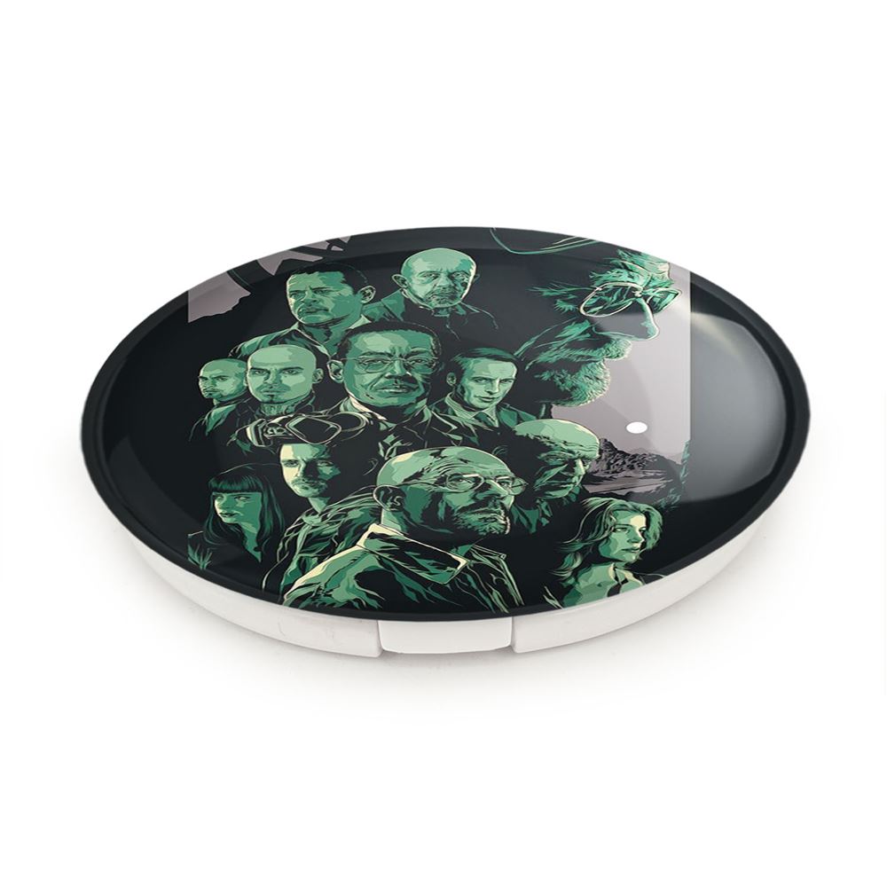 آینه های تاشو سریال بریکینگ بد Breaking Bad خندالو، از جنس پلاستیک فشرده ABS تولید شده و به رنگ سفید می باشد. یکی از آینه ها ابعاد واقعی را نشان داده و دیگری با قابلیت بزرگنمایی، جزئیات را بهتر نمایش می دهد.