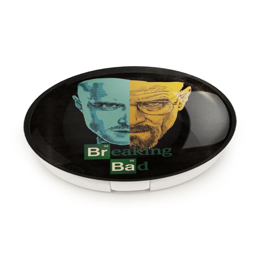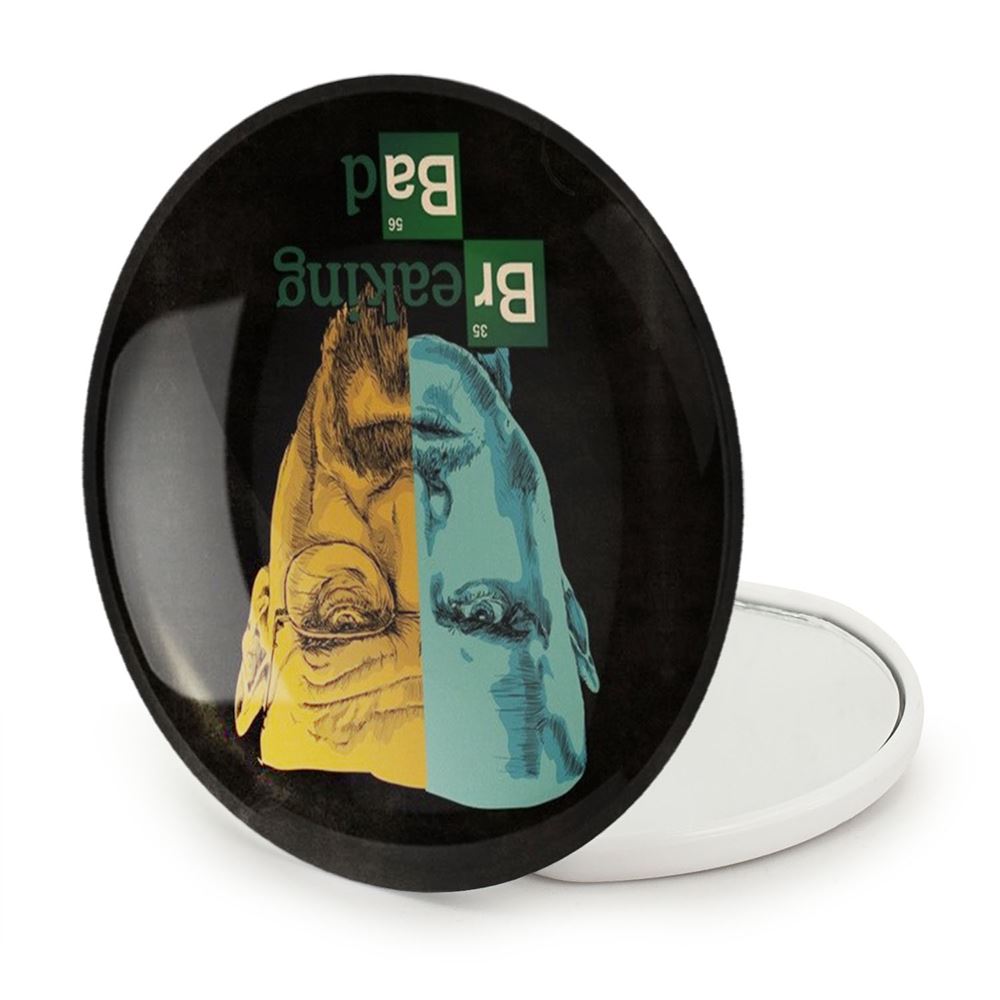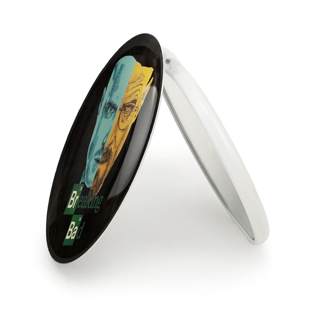 آینه های تاشو سریال بریکینگ بد Breaking Bad خندالو، از جنس پلاستیک فشرده ABS تولید شده و به رنگ سفید می باشد. یکی از آینه ها ابعاد واقعی را نشان داده و دیگری با قابلیت بزرگنمایی، جزئیات را بهتر نمایش می دهد.