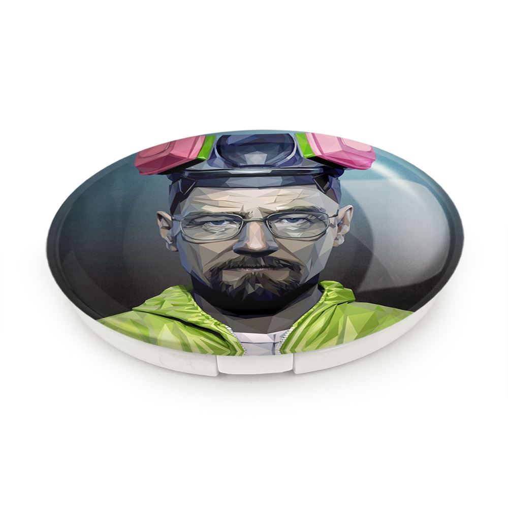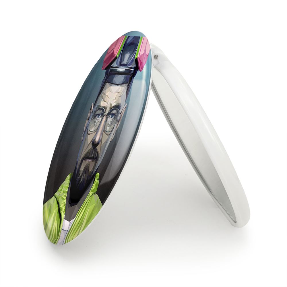 آینه های تاشو سریال بریکینگ بد Breaking Bad خندالو، از جنس پلاستیک فشرده ABS تولید شده و به رنگ سفید می باشد. یکی از آینه ها ابعاد واقعی را نشان داده و دیگری با قابلیت بزرگنمایی، جزئیات را بهتر نمایش می دهد.