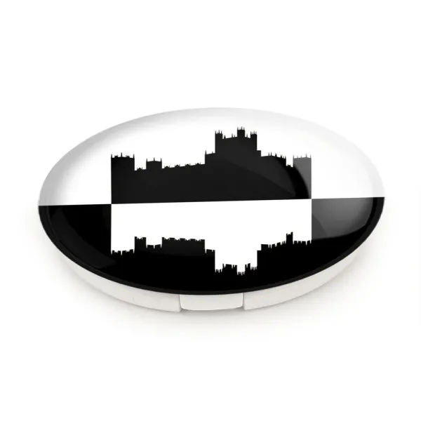 آینه های تاشو سریال دانتون ابی Downton Abbey خندالو، از جنس پلاستیک فشرده ABS تولید شده و به رنگ سفید می باشد. یکی از آینه ها ابعاد واقعی را نشان داده و دیگری با قابلیت بزرگنمایی، جزئیات را بهتر نمایش می دهد.