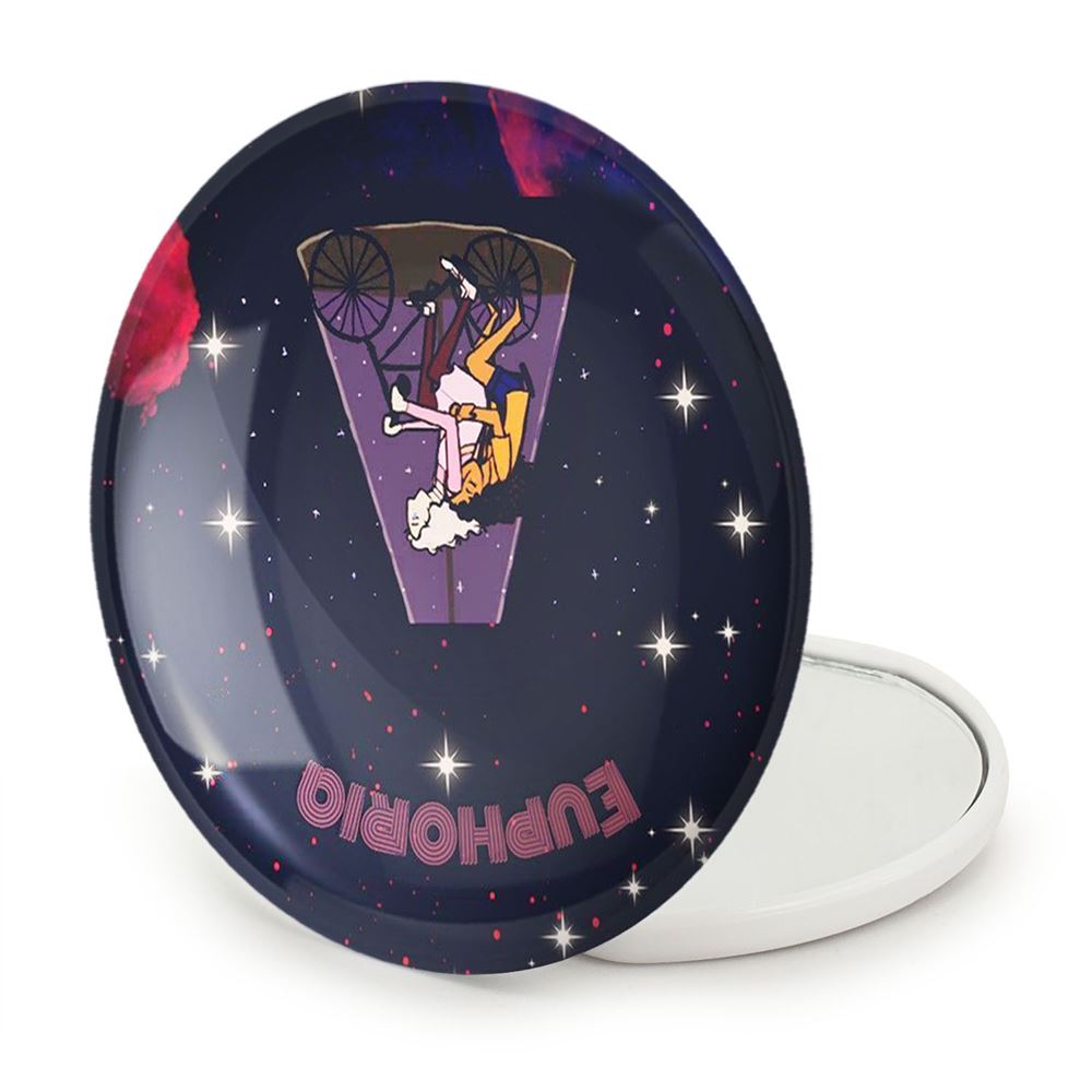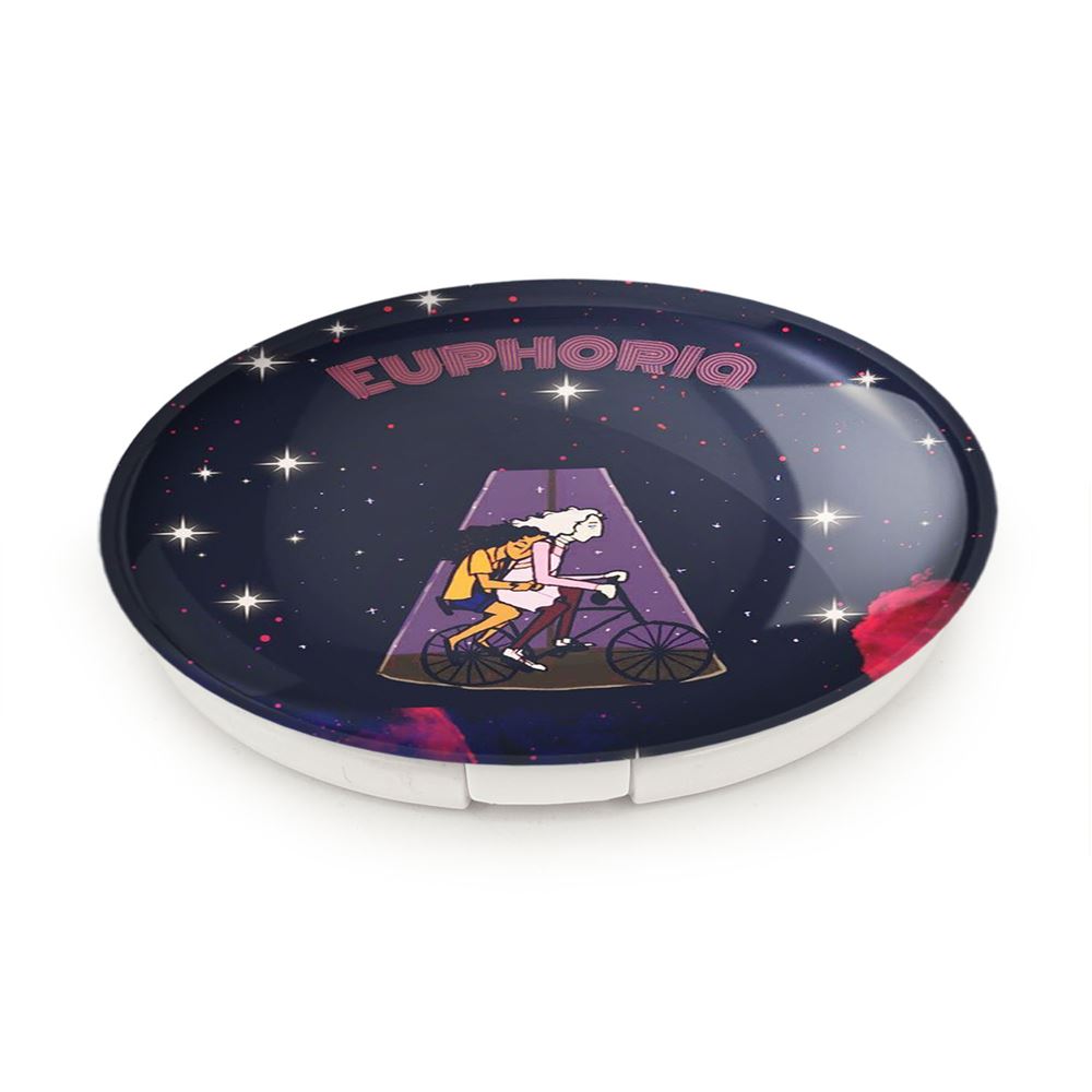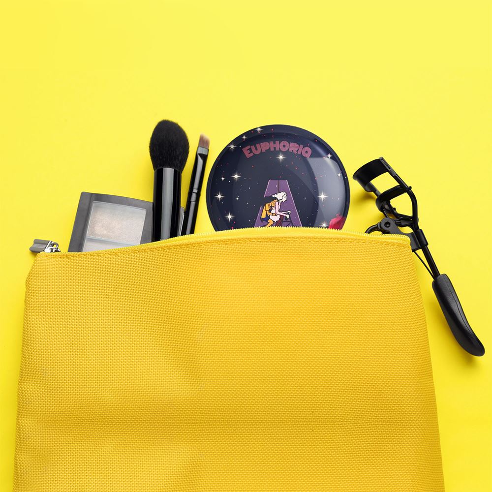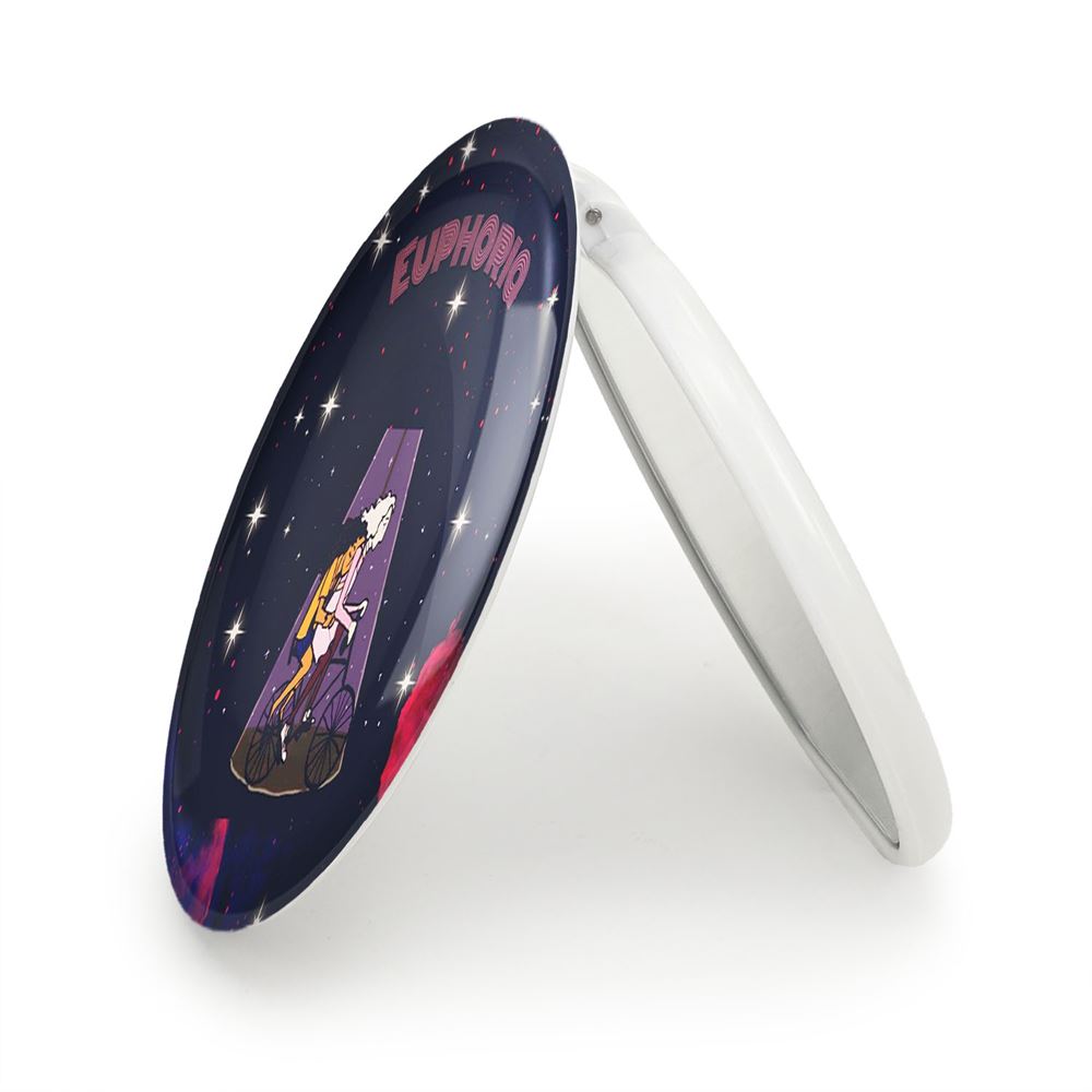 آینه های تاشو سریال سرخوشی Euphoria خندالو، از جنس پلاستیک فشرده ABS تولید شده و به رنگ سفید می باشد. یکی از آینه ها ابعاد واقعی را نشان داده و دیگری با قابلیت بزرگنمایی، جزئیات را بهتر نمایش می دهد. ابعاد هر یک از آینه ها، دایره ای به قطر 7.5 سانت می باشد که نه خیلی بزرگ و غیر قابل استفاده در کیف آرایشی ست و نه خیلی کوچک که تصویر خاصی در آن مشاهده نشود. آینه تاشو سریال سرخوشی Euphoria سایزی استاندارد و کارآمد دارد و در هر کیفی جا میگیرد. چاپ طرح بوسیله چاپگرهای دیجیتال شش رنگ با شفافیت و کیفیتی مثال زدنی بر روی یک وجه از بدنه ی آینه انجام گرفته و با روکش لمینت حرارتی پوشیده شده که در مقابل آسیب و خط و خش مقاوم بوده و کیفیت بالایی دارد. درب آینه بوسیله قفل بدنه ی آن، باز نمی ماند و کاملا بسته می شود و مناسب قرار گیری در کیف لوازم آرایش و کیف های کوچک دستی نیز هست. آینه های تاشو سریال سرخوشی Euphoria خندالو با تنوع طرحی بسیار بالا، سلیقه هر نوع مخاطبی را تامین میکند.