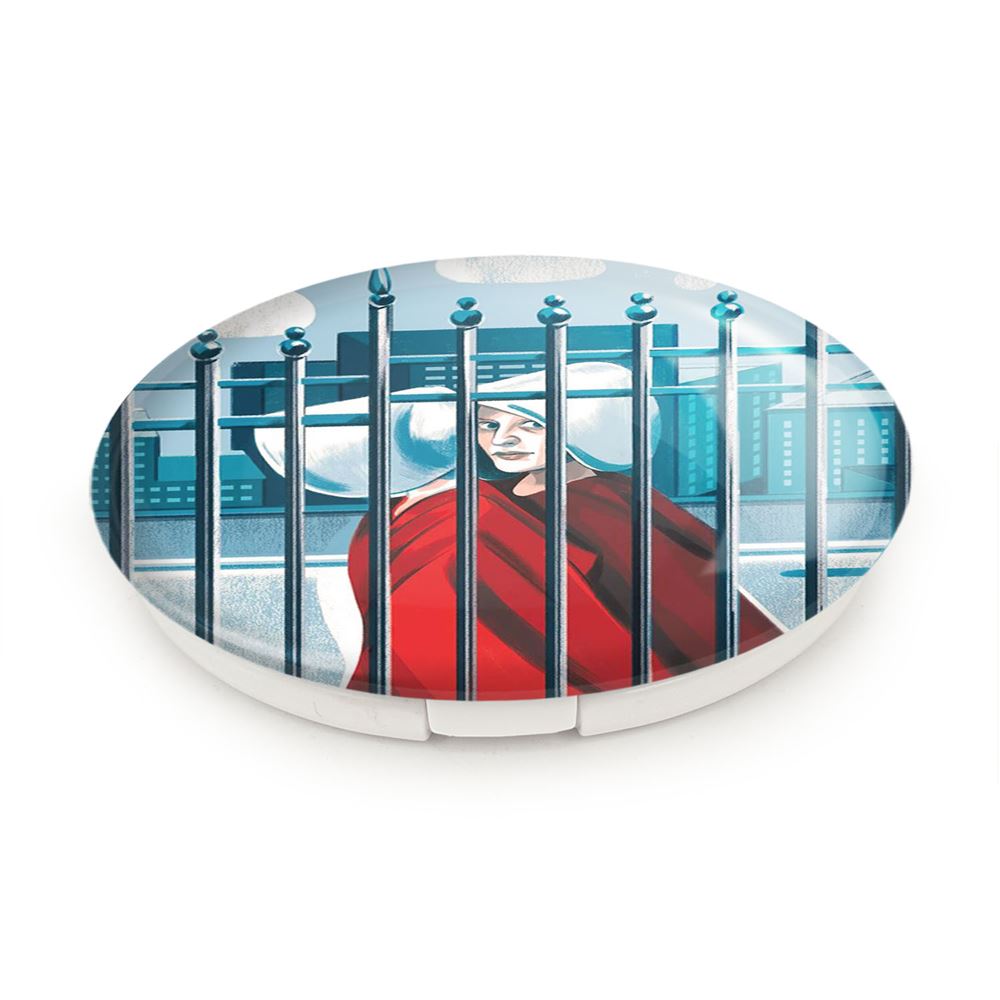 آینه های تاشو سریال سرگذشت یک ندیمه The Handmaid’s Tale خندالو، از جنس پلاستیک فشرده ABS تولید شده و به رنگ سفید می باشد. یکی از آینه ها ابعاد واقعی را نشان داده و دیگری با قابلیت بزرگنمایی، جزئیات را بهتر نمایش می دهد.