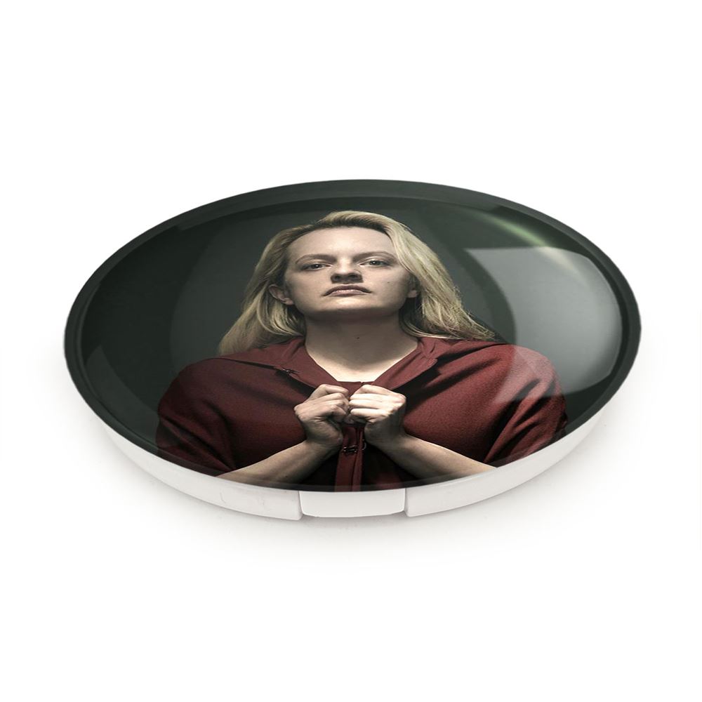 آینه های تاشو سریال سرگذشت یک ندیمه The Handmaid’s Tale خندالو، از جنس پلاستیک فشرده ABS تولید شده و به رنگ سفید می باشد. یکی از آینه ها ابعاد واقعی را نشان داده و دیگری با قابلیت بزرگنمایی، جزئیات را بهتر نمایش می دهد.