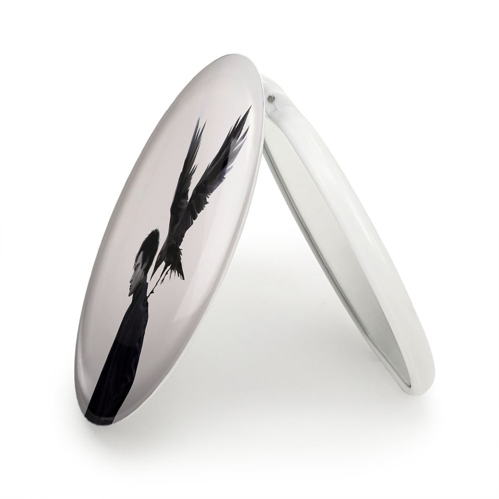 آینه های تاشو سریال سندمن مرد شنی Sandman خندالو، از جنس پلاستیک فشرده ABS تولید شده و به رنگ سفید می باشد. یکی از آینه ها ابعاد واقعی را نشان داده و دیگری با قابلیت بزرگنمایی، جزئیات را بهتر نمایش می دهد. ابعاد هر یک از آینه ها، دایره ای به قطر 7.5 سانت می باشد که نه خیلی بزرگ و غیر قابل استفاده در کیف آرایشی ست و نه خیلی کوچک که تصویر خاصی در آن مشاهده نشود. آینه تاشو سریال سندمن مرد شنی Sandman سایزی استاندارد و کارآمد دارد و در هر کیفی جا میگیرد. چاپ طرح بوسیله چاپگرهای دیجیتال شش رنگ با شفافیت و کیفیتی مثال زدنی بر روی یک وجه از بدنه ی آینه انجام گرفته و با روکش لمینت حرارتی پوشیده شده که در مقابل آسیب و خط و خش مقاوم بوده و کیفیت بالایی دارد. درب آینه بوسیله قفل بدنه ی آن، باز نمی ماند و کاملا بسته می شود و مناسب قرار گیری در کیف لوازم آرایش و کیف های کوچک دستی نیز هست. آینه های تاشو سریال سندمن مرد شنی Sandman خندالو با تنوع طرحی بسیار بالا، سلیقه هر نوع مخاطبی را تامین میکند.