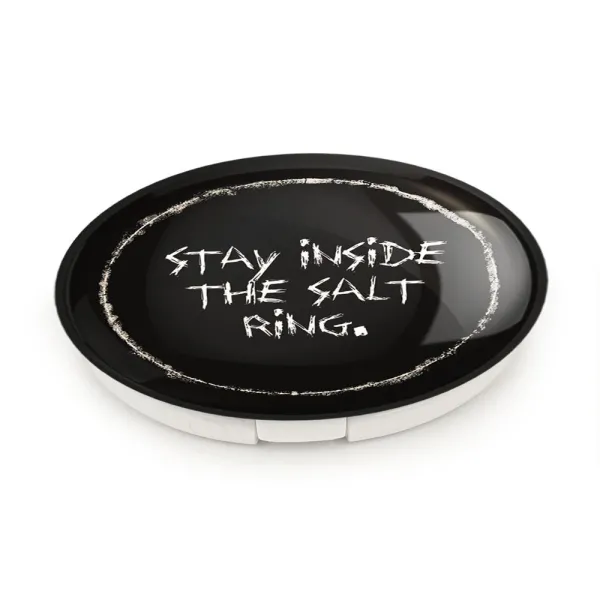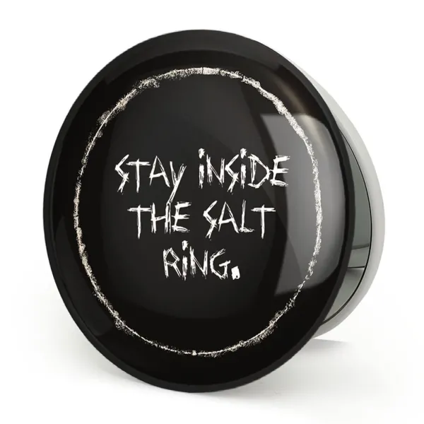 آینه های تاشو سریال سوپرنچرال Supernatural خندالو، از جنس پلاستیک فشرده ABS تولید شده و به رنگ سفید می باشد. یکی از آینه ها ابعاد واقعی را نشان داده و دیگری با قابلیت بزرگنمایی، جزئیات را بهتر نمایش می دهد. ابعاد هر یک از آینه ها، دایره ای به قطر 7.5 سانت می باشد که نه خیلی بزرگ و غیر قابل استفاده در کیف آرایشی ست و نه خیلی کوچک که تصویر خاصی در آن مشاهده نشود. آینه تاشو سریال سوپرنچرال Supernatural سایزی استاندارد و کارآمد دارد و در هر کیفی جا میگیرد. چاپ طرح بوسیله چاپگرهای دیجیتال شش رنگ با شفافیت و کیفیتی مثال زدنی بر روی یک وجه از بدنه ی آینه انجام گرفته و با روکش لمینت حرارتی پوشیده شده که در مقابل آسیب و خط و خش مقاوم بوده و کیفیت بالایی دارد. درب آینه بوسیله قفل بدنه ی آن، باز نمی ماند و کاملا بسته می شود و مناسب قرار گیری در کیف لوازم آرایش و کیف های کوچک دستی نیز هست. آینه های تاشو سریال سوپرنچرال Supernatural خندالو با تنوع طرحی بسیار بالا، سلیقه هر نوع مخاطبی را تامین میکند.