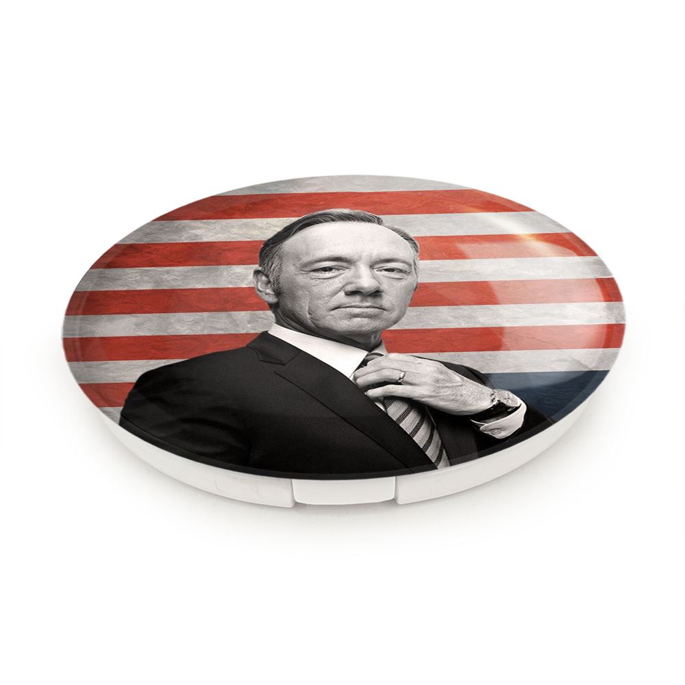 آینه های تاشو سریال House Of Cards خندالو، از جنس پلاستیک فشرده ABS تولید شده و به رنگ سفید می باشد. یکی از آینه ها ابعاد واقعی را نشان داده و دیگری با قابلیت بزرگنمایی، جزئیات را بهتر نمایش می دهد.