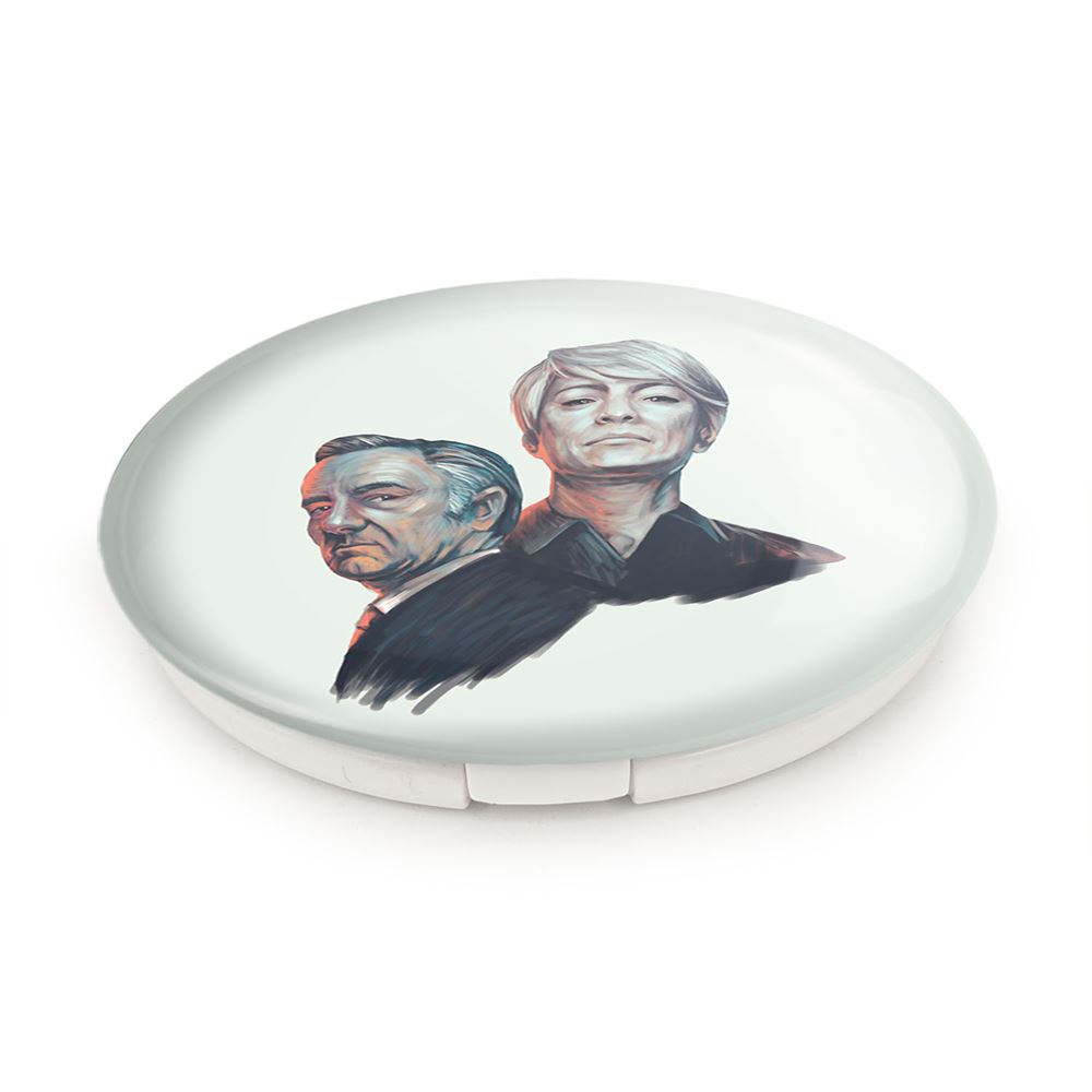 آینه های تاشو سریال House Of Cards خندالو، از جنس پلاستیک فشرده ABS تولید شده و به رنگ سفید می باشد. یکی از آینه ها ابعاد واقعی را نشان داده و دیگری با قابلیت بزرگنمایی، جزئیات را بهتر نمایش می دهد.