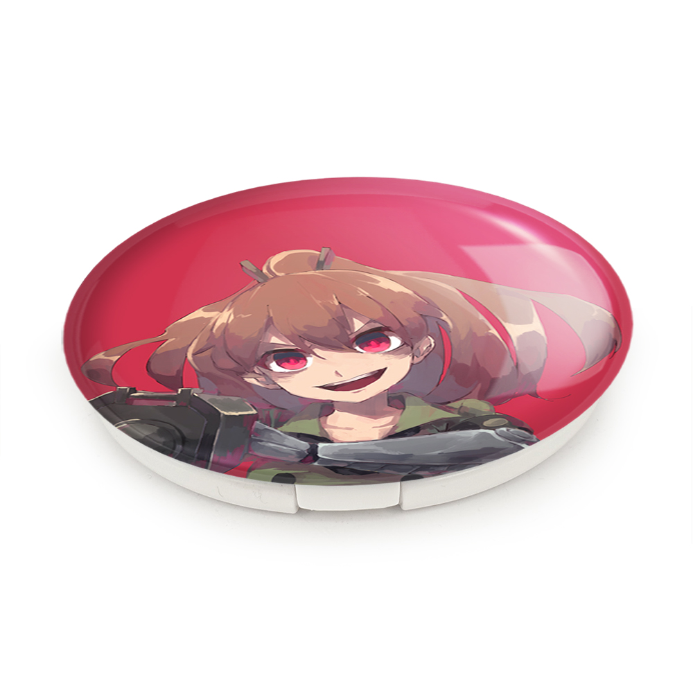آینه های تاشو سریو انیمه آکامه گا کیل خندالو، از جنس پلاستیک فشرده ABS تولید شده و به رنگ سفید می باشد. یکی از آینه ها ابعاد واقعی را نشان داده و دیگری با قابلیت بزرگنمایی، جزئیات را بهتر نمایش می دهد. ابعاد هر یک از آینه ها، دایره ای به قطر 7.5 سانت می باشد که نه خیلی بزرگ و غیر قابل استفاده در کیف آرایشی ست و نه خیلی کوچک که تصویر خاصی در آن مشاهده نشود. آینه تاشو سریو انیمه آکامه گا کیل سایزی استاندارد و کارآمد دارد و در هر کیفی جا میگیرد. چاپ طرح بوسیله چاپگرهای دیجیتال شش رنگ با شفافیت و کیفیتی مثال زدنی بر روی یک وجه از بدنه ی آینه انجام گرفته و با روکش لمینت حرارتی پوشیده شده که در مقابل آسیب و خط و خش مقاوم بوده و کیفیت بالایی دارد. درب آینه بوسیله قفل بدنه ی آن، باز نمی ماند و کاملا بسته می شود و مناسب قرار گیری در کیف لوازم آرایش و کیف های کوچک دستی نیز هست. آینه های تاشو سریو انیمه آکامه گا کیل خندالو با تنوع طرحی بسیار بالا، سلیقه هر نوع مخاطبی را تامین میکند.