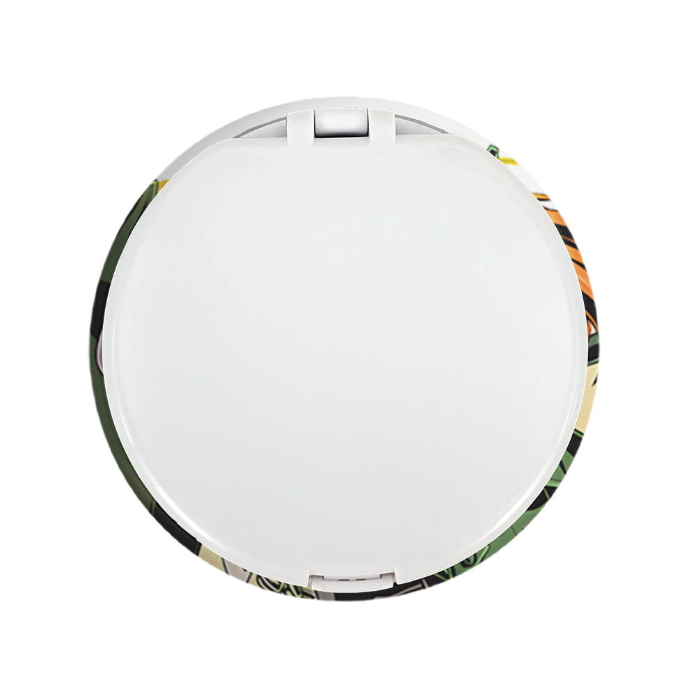 آینه های تاشو سریو انیمه آکامه گا کیل خندالو، از جنس پلاستیک فشرده ABS تولید شده و به رنگ سفید می باشد. یکی از آینه ها ابعاد واقعی را نشان داده و دیگری با قابلیت بزرگنمایی، جزئیات را بهتر نمایش می دهد. ابعاد هر یک از آینه ها، دایره ای به قطر 7.5 سانت می باشد که نه خیلی بزرگ و غیر قابل استفاده در کیف آرایشی ست و نه خیلی کوچک که تصویر خاصی در آن مشاهده نشود. آینه تاشو سریو انیمه آکامه گا کیل سایزی استاندارد و کارآمد دارد و در هر کیفی جا میگیرد. چاپ طرح بوسیله چاپگرهای دیجیتال شش رنگ با شفافیت و کیفیتی مثال زدنی بر روی یک وجه از بدنه ی آینه انجام گرفته و با روکش لمینت حرارتی پوشیده شده که در مقابل آسیب و خط و خش مقاوم بوده و کیفیت بالایی دارد. درب آینه بوسیله قفل بدنه ی آن، باز نمی ماند و کاملا بسته می شود و مناسب قرار گیری در کیف لوازم آرایش و کیف های کوچک دستی نیز هست. آینه های تاشو سریو انیمه آکامه گا کیل خندالو با تنوع طرحی بسیار بالا، سلیقه هر نوع مخاطبی را تامین میکند.