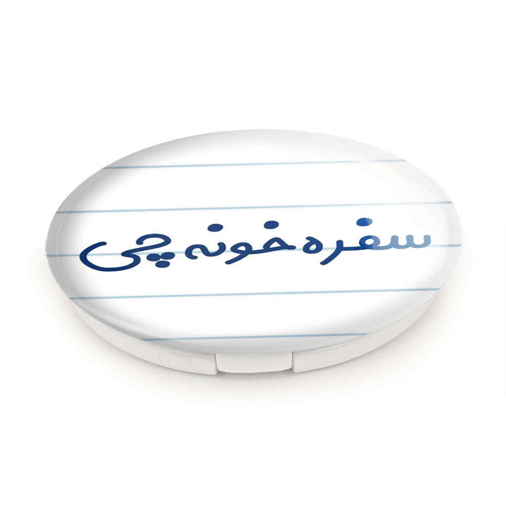 آینه های تاشو سفره خونه چی خندالو، از جنس پلاستیک فشرده ABS تولید شده و به رنگ سفید می باشد. یکی از آینه ها ابعاد واقعی را نشان داده و دیگری با قابلیت بزرگنمایی، جزئیات را بهتر نمایش می دهد. ابعاد هر یک از آینه ها، دایره ای به قطر 7.5 سانت می باشد که نه خیلی بزرگ و غیر قابل استفاده در کیف آرایشی ست و نه خیلی کوچک که تصویر خاصی در آن مشاهده نشود. آینه تاشو سفره خونه چی سایزی استاندارد و کارآمد دارد و در هر کیفی جا میگیرد. چاپ طرح بوسیله چاپگرهای دیجیتال شش رنگ با شفافیت و کیفیتی مثال زدنی بر روی یک وجه از بدنه ی آینه انجام گرفته و با روکش لمینت حرارتی پوشیده شده که در مقابل آسیب و خط و خش مقاوم بوده و کیفیت بالایی دارد. درب آینه بوسیله قفل بدنه ی آن، باز نمی ماند و کاملا بسته می شود و مناسب قرار گیری در کیف لوازم آرایش و کیف های کوچک دستی نیز هست. آینه های تاشو سفره خونه چی خندالو با تنوع طرحی بسیار بالا، سلیقه هر نوع مخاطبی را تامین میکند.
