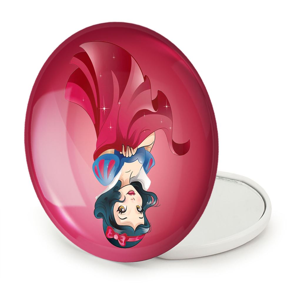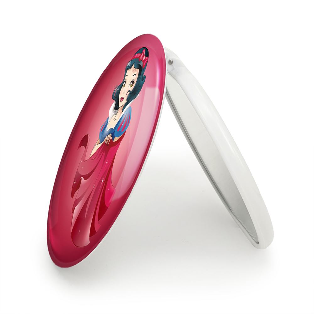 آینه های تاشو سفید برفی Snow White خندالو، از جنس پلاستیک فشرده ABS تولید شده و به رنگ سفید می باشد. یکی از آینه ها ابعاد واقعی را نشان داده و دیگری با قابلیت بزرگنمایی، جزئیات را بهتر نمایش می دهد. ابعاد هر یک از آینه ها، دایره ای به قطر 7.5 سانت می باشد که نه خیلی بزرگ و غیر قابل استفاده در کیف آرایشی ست و نه خیلی کوچک که تصویر خاصی در آن مشاهده نشود. آینه تاشو سفید برفی Snow White سایزی استاندارد و کارآمد دارد و در هر کیفی جا میگیرد. چاپ طرح بوسیله چاپگرهای دیجیتال شش رنگ با شفافیت و کیفیتی مثال زدنی بر روی یک وجه از بدنه ی آینه انجام گرفته و با روکش لمینت حرارتی پوشیده شده که در مقابل آسیب و خط و خش مقاوم بوده و کیفیت بالایی دارد. درب آینه بوسیله قفل بدنه ی آن، باز نمی ماند و کاملا بسته می شود و مناسب قرار گیری در کیف لوازم آرایش و کیف های کوچک دستی نیز هست. آینه های تاشو سفید برفی Snow White خندالو با تنوع طرحی بسیار بالا، سلیقه هر نوع مخاطبی را تامین میکند.