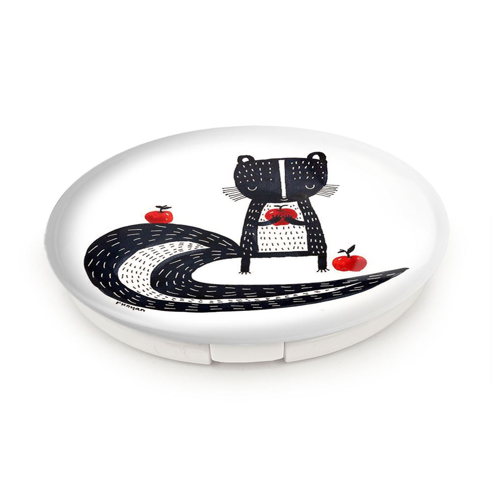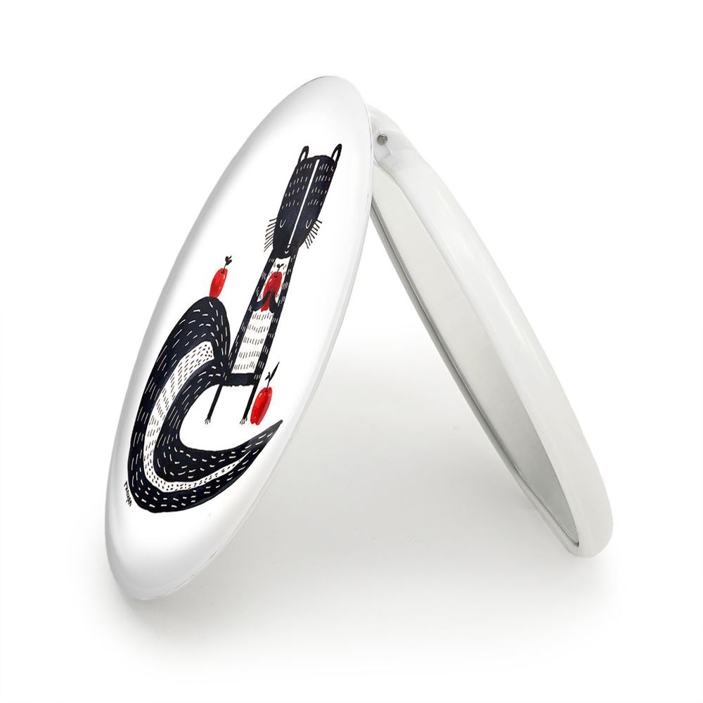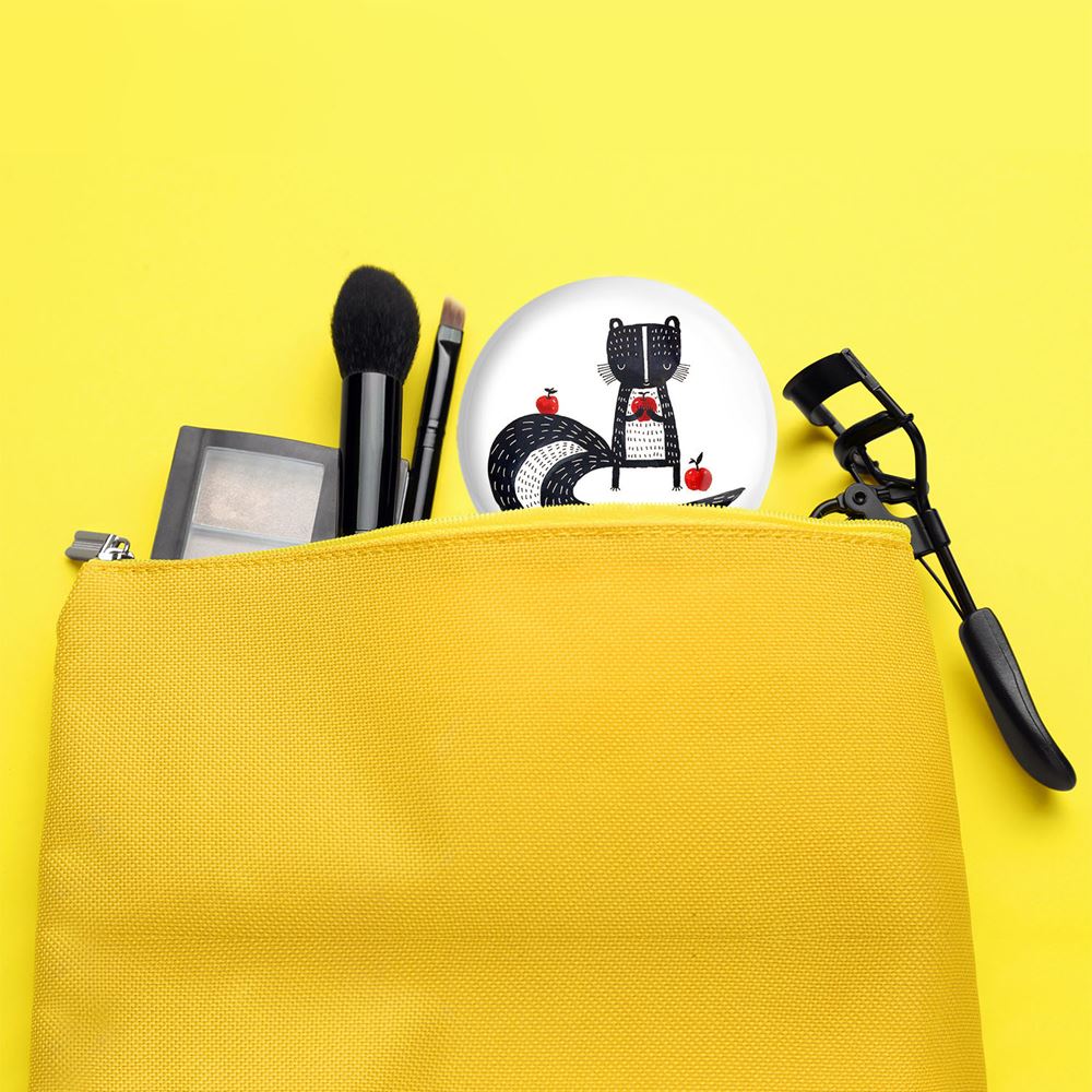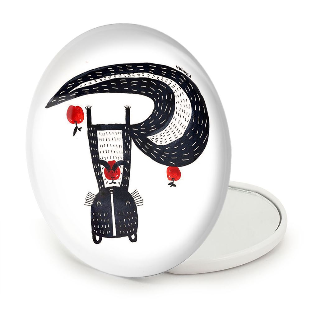 آینه های تاشو سنجاب خندالو، از جنس پلاستیک فشرده ABS تولید شده و به رنگ سفید می باشد. یکی از آینه ها ابعاد واقعی را نشان داده و دیگری با قابلیت بزرگنمایی، جزئیات را بهتر نمایش می دهد. ابعاد هر یک از آینه ها، دایره ای به قطر 7.5 سانت می باشد که نه خیلی بزرگ و غیر قابل استفاده در کیف آرایشی ست و نه خیلی کوچک که تصویر خاصی در آن مشاهده نشود. آینه تاشو سنجاب سایزی استاندارد و کارآمد دارد و در هر کیفی جا میگیرد. چاپ طرح بوسیله چاپگرهای دیجیتال شش رنگ با شفافیت و کیفیتی مثال زدنی بر روی یک وجه از بدنه ی آینه انجام گرفته و با روکش لمینت حرارتی پوشیده شده که در مقابل آسیب و خط و خش مقاوم بوده و کیفیت بالایی دارد. درب آینه بوسیله قفل بدنه ی آن، باز نمی ماند و کاملا بسته می شود و مناسب قرار گیری در کیف لوازم آرایش و کیف های کوچک دستی نیز هست. آینه های تاشو سنجاب خندالو با تنوع طرحی بسیار بالا، سلیقه هر نوع مخاطبی را تامین میکند.