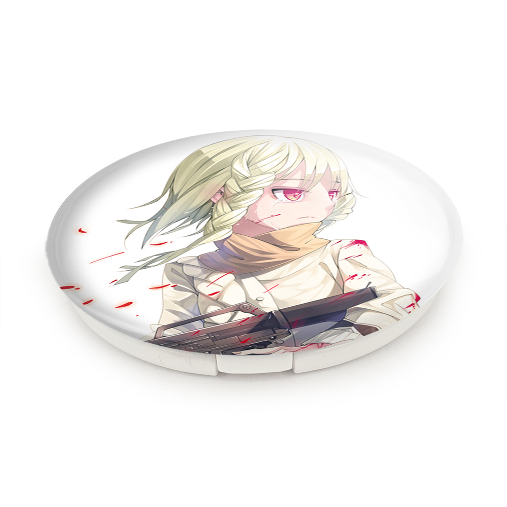 آینه های تاشو سنجو انیمه گلوله سیاه خندالو، از جنس پلاستیک فشرده ABS تولید شده و به رنگ سفید می باشد. یکی از آینه ها ابعاد واقعی را نشان داده و دیگری با قابلیت بزرگنمایی، جزئیات را بهتر نمایش می دهد. ابعاد هر یک از آینه ها، دایره ای به قطر 7.5 سانت می باشد که نه خیلی بزرگ و غیر قابل استفاده در کیف آرایشی ست و نه خیلی کوچک که تصویر خاصی در آن مشاهده نشود. آینه تاشو سنجو انیمه گلوله سیاه سایزی استاندارد و کارآمد دارد و در هر کیفی جا میگیرد. چاپ طرح بوسیله چاپگرهای دیجیتال شش رنگ با شفافیت و کیفیتی مثال زدنی بر روی یک وجه از بدنه ی آینه انجام گرفته و با روکش لمینت حرارتی پوشیده شده که در مقابل آسیب و خط و خش مقاوم بوده و کیفیت بالایی دارد. درب آینه بوسیله قفل بدنه ی آن، باز نمی ماند و کاملا بسته می شود و مناسب قرار گیری در کیف لوازم آرایش و کیف های کوچک دستی نیز هست. آینه های تاشو سنجو انیمه گلوله سیاه خندالو با تنوع طرحی بسیار بالا، سلیقه هر نوع مخاطبی را تامین میکند.