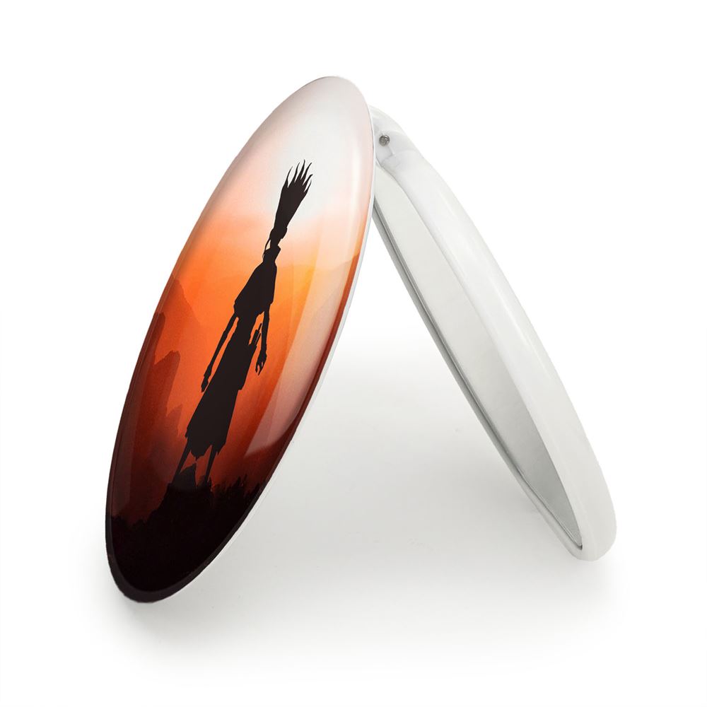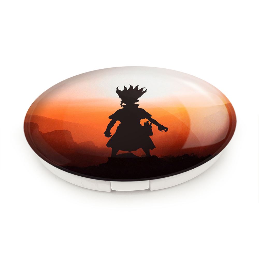 آینه های تاشو سنکو انیمه دکتر استون Dr. Stone خندالو، از جنس پلاستیک فشرده ABS تولید شده و به رنگ سفید می باشد. یکی از آینه ها ابعاد واقعی را نشان داده و دیگری با قابلیت بزرگنمایی، جزئیات را بهتر نمایش می دهد. ابعاد هر یک از آینه ها، دایره ای به قطر 7.5 سانت می باشد که نه خیلی بزرگ و غیر قابل استفاده در کیف آرایشی ست و نه خیلی کوچک که تصویر خاصی در آن مشاهده نشود. آینه تاشو سنکو انیمه دکتر استون Dr. Stone سایزی استاندارد و کارآمد دارد و در هر کیفی جا میگیرد. چاپ طرح بوسیله چاپگرهای دیجیتال شش رنگ با شفافیت و کیفیتی مثال زدنی بر روی یک وجه از بدنه ی آینه انجام گرفته و با روکش لمینت حرارتی پوشیده شده که در مقابل آسیب و خط و خش مقاوم بوده و کیفیت بالایی دارد. درب آینه بوسیله قفل بدنه ی آن، باز نمی ماند و کاملا بسته می شود و مناسب قرار گیری در کیف لوازم آرایش و کیف های کوچک دستی نیز هست. آینه های تاشو سنکو انیمه دکتر استون Dr. Stone خندالو با تنوع طرحی بسیار بالا، سلیقه هر نوع مخاطبی را تامین میکند.
