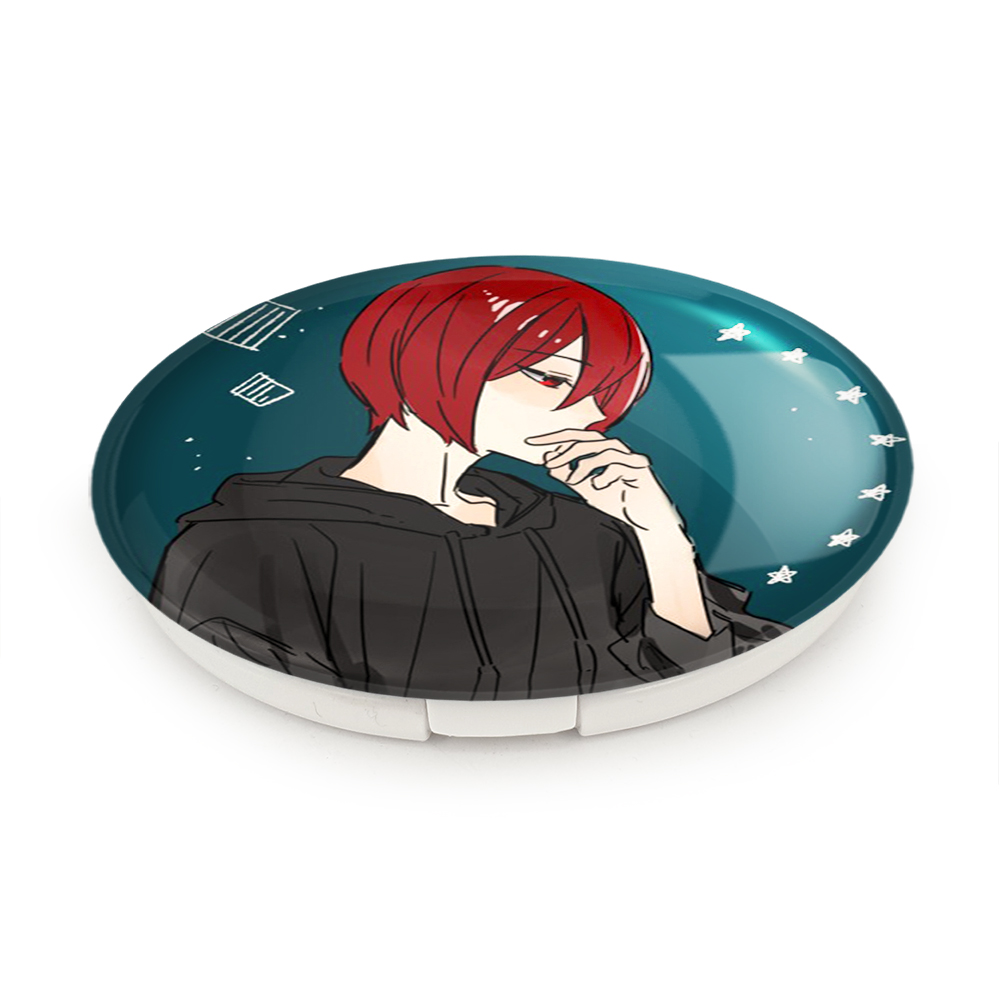 آینه های تاشو سنگکو انیمه هوریمیا خندالو، از جنس پلاستیک فشرده ABS تولید شده و به رنگ سفید می باشد. یکی از آینه ها ابعاد واقعی را نشان داده و دیگری با قابلیت بزرگنمایی، جزئیات را بهتر نمایش می دهد. ابعاد هر یک از آینه ها، دایره ای به قطر 7.5 سانت می باشد که نه خیلی بزرگ و غیر قابل استفاده در کیف آرایشی ست و نه خیلی کوچک که تصویر خاصی در آن مشاهده نشود. آینه تاشو سنگکو انیمه هوریمیا سایزی استاندارد و کارآمد دارد و در هر کیفی جا میگیرد. چاپ طرح بوسیله چاپگرهای دیجیتال شش رنگ با شفافیت و کیفیتی مثال زدنی بر روی یک وجه از بدنه ی آینه انجام گرفته و با روکش لمینت حرارتی پوشیده شده که در مقابل آسیب و خط و خش مقاوم بوده و کیفیت بالایی دارد. درب آینه بوسیله قفل بدنه ی آن، باز نمی ماند و کاملا بسته می شود و مناسب قرار گیری در کیف لوازم آرایش و کیف های کوچک دستی نیز هست. آینه های تاشو سنگکو انیمه هوریمیا خندالو با تنوع طرحی بسیار بالا، سلیقه هر نوع مخاطبی را تامین میکند.