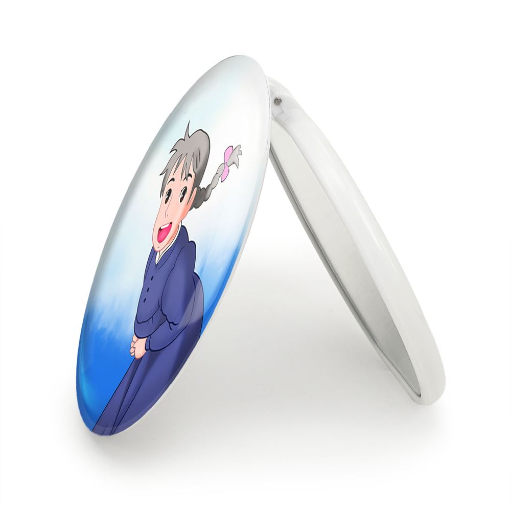 آینه های تاشو سوفی انیمه قلعه متحرک هاول خندالو، از جنس پلاستیک فشرده ABS تولید شده و به رنگ سفید می باشد. یکی از آینه ها ابعاد واقعی را نشان داده و دیگری با قابلیت بزرگنمایی، جزئیات را بهتر نمایش می دهد. ابعاد هر یک از آینه ها، دایره ای به قطر 7.5 سانت می باشد که نه خیلی بزرگ و غیر قابل استفاده در کیف آرایشی ست و نه خیلی کوچک که تصویر خاصی در آن مشاهده نشود. آینه تاشو سوفی انیمه قلعه متحرک هاول سایزی استاندارد و کارآمد دارد و در هر کیفی جا میگیرد. چاپ طرح بوسیله چاپگرهای دیجیتال شش رنگ با شفافیت و کیفیتی مثال زدنی بر روی یک وجه از بدنه ی آینه انجام گرفته و با روکش لمینت حرارتی پوشیده شده که در مقابل آسیب و خط و خش مقاوم بوده و کیفیت بالایی دارد. درب آینه بوسیله قفل بدنه ی آن، باز نمی ماند و کاملا بسته می شود و مناسب قرار گیری در کیف لوازم آرایش و کیف های کوچک دستی نیز هست. آینه های تاشو سوفی انیمه قلعه متحرک هاول خندالو با تنوع طرحی بسیار بالا، سلیقه هر نوع مخاطبی را تامین میکند.
