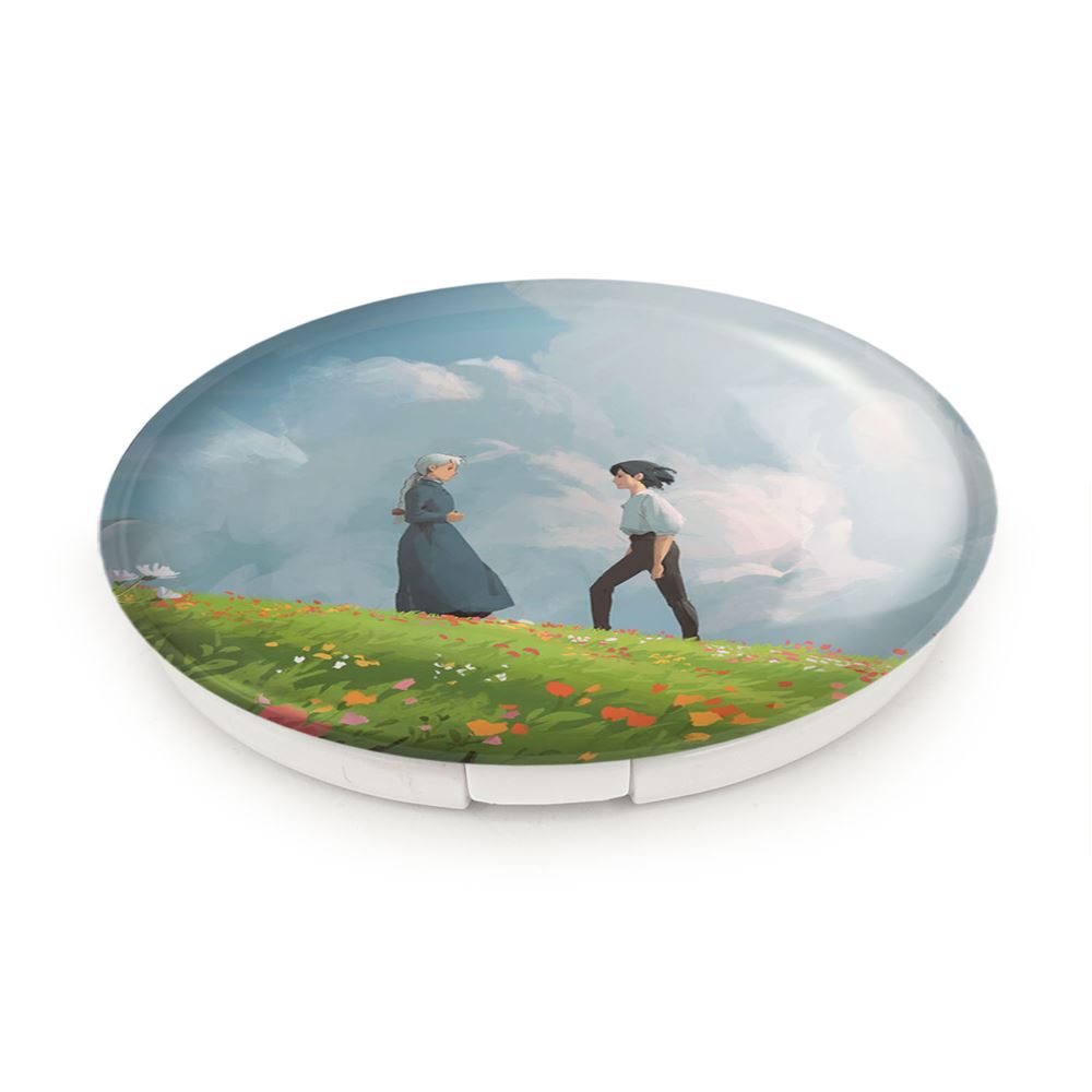 آینه های تاشو سوفی و هاول انیمه قلعه متحرک هاول خندالو، از جنس پلاستیک فشرده ABS تولید شده و به رنگ سفید می باشد. یکی از آینه ها ابعاد واقعی را نشان داده و دیگری با قابلیت بزرگنمایی، جزئیات را بهتر نمایش می دهد. ابعاد هر یک از آینه ها، دایره ای به قطر 7.5 سانت می باشد که نه خیلی بزرگ و غیر قابل استفاده در کیف آرایشی ست و نه خیلی کوچک که تصویر خاصی در آن مشاهده نشود. آینه تاشو سوفی و هاول انیمه قلعه متحرک هاول سایزی استاندارد و کارآمد دارد و در هر کیفی جا میگیرد. چاپ طرح بوسیله چاپگرهای دیجیتال شش رنگ با شفافیت و کیفیتی مثال زدنی بر روی یک وجه از بدنه ی آینه انجام گرفته و با روکش لمینت حرارتی پوشیده شده که در مقابل آسیب و خط و خش مقاوم بوده و کیفیت بالایی دارد. درب آینه بوسیله قفل بدنه ی آن، باز نمی ماند و کاملا بسته می شود و مناسب قرار گیری در کیف لوازم آرایش و کیف های کوچک دستی نیز هست. آینه های تاشو سوفی و هاول انیمه قلعه متحرک هاول خندالو با تنوع طرحی بسیار بالا، سلیقه هر نوع مخاطبی را تامین میکند.