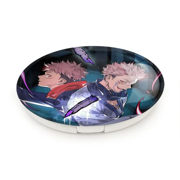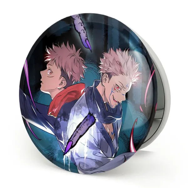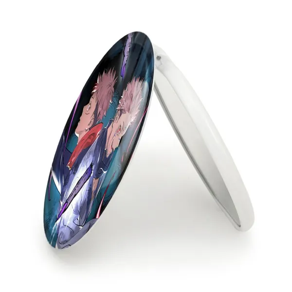 آینه های تاشو سوکونا و ایتادوری انیمه جوجوتسو کایزن خندالو، از جنس پلاستیک فشرده ABS تولید شده و به رنگ سفید می باشد. یکی از آینه ها ابعاد واقعی را نشان داده و دیگری با قابلیت بزرگنمایی، جزئیات را بهتر نمایش می دهد. ابعاد هر یک از آینه ها، دایره ای به قطر 7.5 سانت می باشد که نه خیلی بزرگ و غیر قابل استفاده در کیف آرایشی ست و نه خیلی کوچک که تصویر خاصی در آن مشاهده نشود. آینه تاشو سوکونا و ایتادوری انیمه جوجوتسو کایزن سایزی استاندارد و کارآمد دارد و در هر کیفی جا میگیرد. چاپ طرح بوسیله چاپگرهای دیجیتال شش رنگ با شفافیت و کیفیتی مثال زدنی بر روی یک وجه از بدنه ی آینه انجام گرفته و با روکش لمینت حرارتی پوشیده شده که در مقابل آسیب و خط و خش مقاوم بوده و کیفیت بالایی دارد. درب آینه بوسیله قفل بدنه ی آن، باز نمی ماند و کاملا بسته می شود و مناسب قرار گیری در کیف لوازم آرایش و کیف های کوچک دستی نیز هست. آینه های تاشو سوکونا و ایتادوری انیمه جوجوتسو کایزن خندالو با تنوع طرحی بسیار بالا، سلیقه هر نوع مخاطبی را تامین میکند.