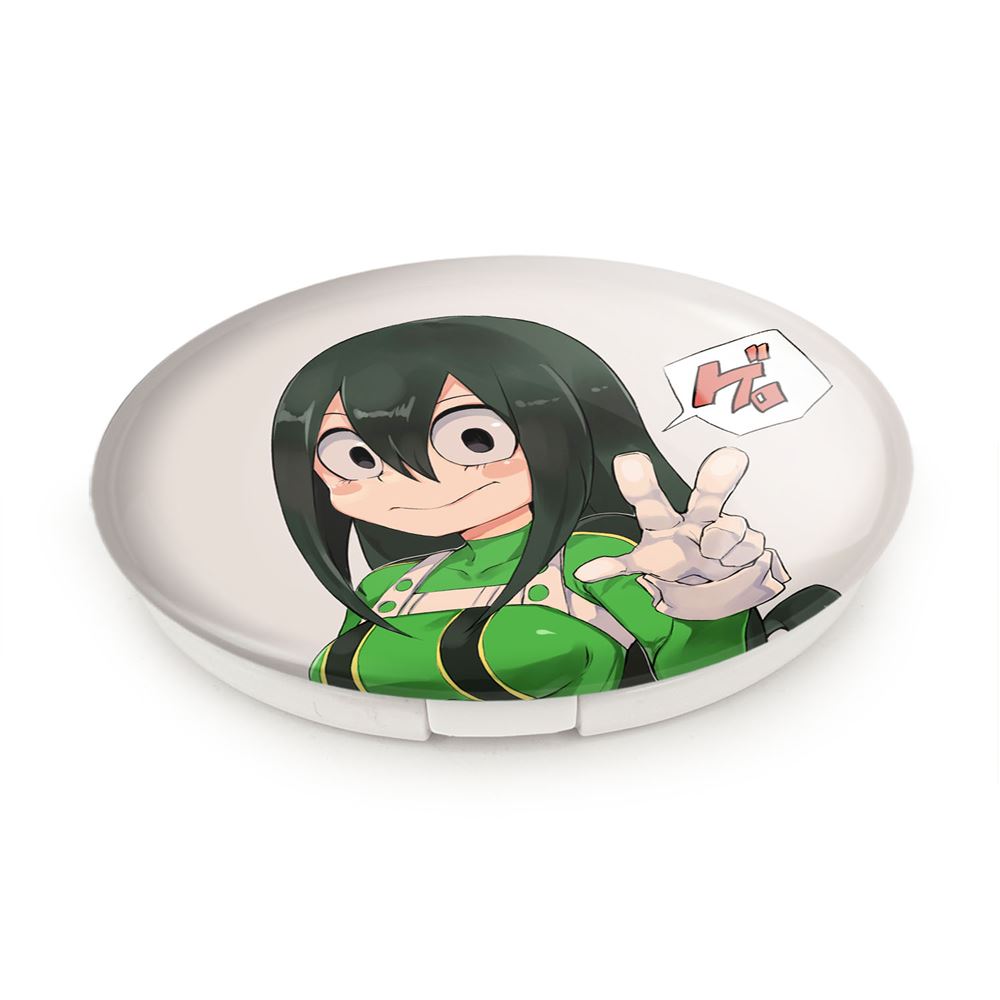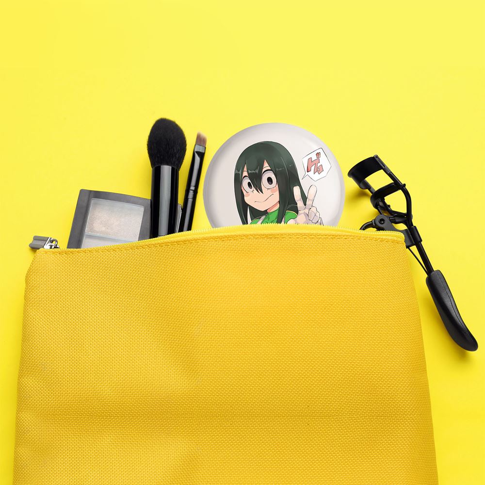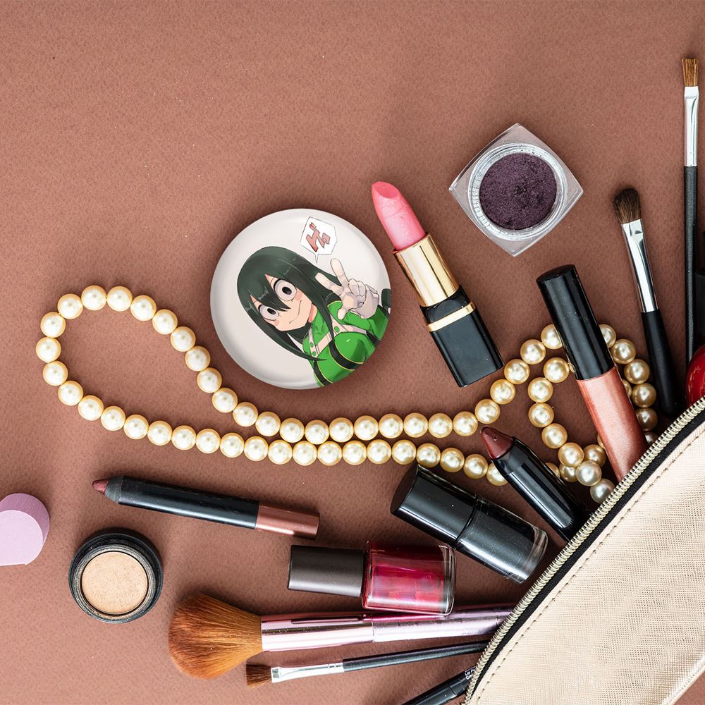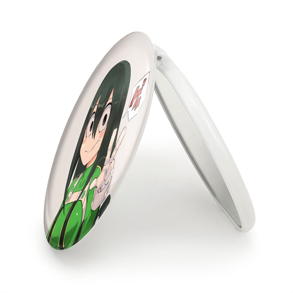 آینه های تاشو سویا آسومی انیمه آکادمی قهرمان من خندالو، از جنس پلاستیک فشرده ABS تولید شده و به رنگ سفید می باشد. یکی از آینه ها ابعاد واقعی را نشان داده و دیگری با قابلیت بزرگنمایی، جزئیات را بهتر نمایش می دهد. ابعاد هر یک از آینه ها، دایره ای به قطر 7.5 سانت می باشد که نه خیلی بزرگ و غیر قابل استفاده در کیف آرایشی ست و نه خیلی کوچک که تصویر خاصی در آن مشاهده نشود. آینه تاشو سویا آسومی انیمه آکادمی قهرمان من سایزی استاندارد و کارآمد دارد و در هر کیفی جا میگیرد. چاپ طرح بوسیله چاپگرهای دیجیتال شش رنگ با شفافیت و کیفیتی مثال زدنی بر روی یک وجه از بدنه ی آینه انجام گرفته و با روکش لمینت حرارتی پوشیده شده که در مقابل آسیب و خط و خش مقاوم بوده و کیفیت بالایی دارد. درب آینه بوسیله قفل بدنه ی آن، باز نمی ماند و کاملا بسته می شود و مناسب قرار گیری در کیف لوازم آرایش و کیف های کوچک دستی نیز هست. آینه های تاشو سویا آسومی انیمه آکادمی قهرمان من خندالو با تنوع طرحی بسیار بالا، سلیقه هر نوع مخاطبی را تامین میکند.