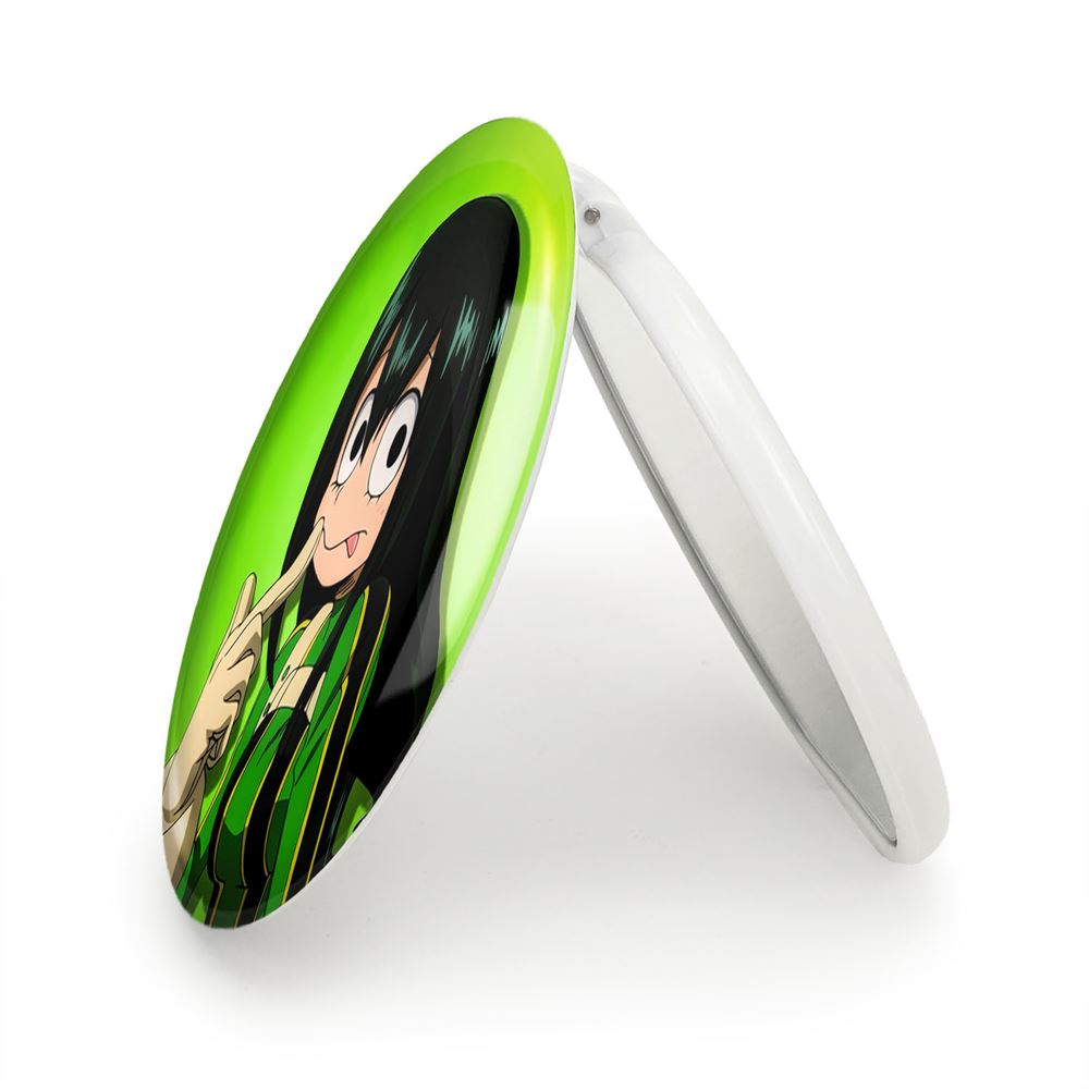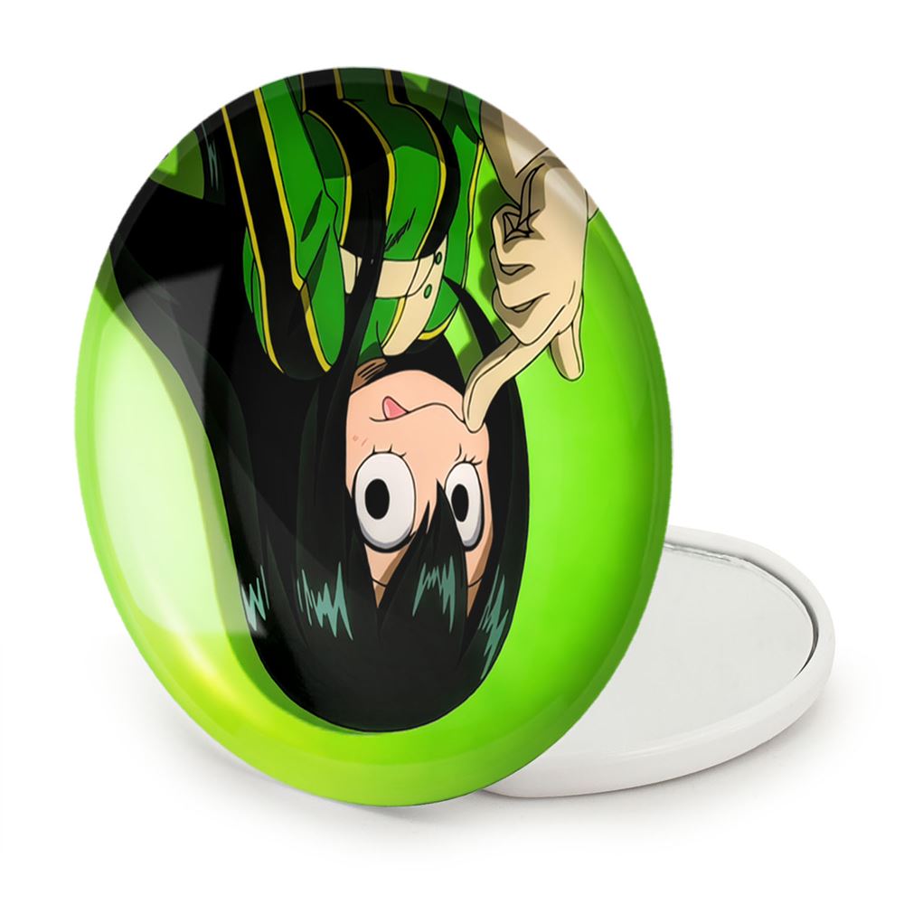 آینه های تاشو سویا اسومی انیمه آکادمی قهرمان من خندالو، از جنس پلاستیک فشرده ABS تولید شده و به رنگ سفید می باشد. یکی از آینه ها ابعاد واقعی را نشان داده و دیگری با قابلیت بزرگنمایی، جزئیات را بهتر نمایش می دهد. ابعاد هر یک از آینه ها، دایره ای به قطر 7.5 سانت می باشد که نه خیلی بزرگ و غیر قابل استفاده در کیف آرایشی ست و نه خیلی کوچک که تصویر خاصی در آن مشاهده نشود. آینه تاشو سویا اسومی انیمه آکادمی قهرمان من سایزی استاندارد و کارآمد دارد و در هر کیفی جا میگیرد. چاپ طرح بوسیله چاپگرهای دیجیتال شش رنگ با شفافیت و کیفیتی مثال زدنی بر روی یک وجه از بدنه ی آینه انجام گرفته و با روکش لمینت حرارتی پوشیده شده که در مقابل آسیب و خط و خش مقاوم بوده و کیفیت بالایی دارد. درب آینه بوسیله قفل بدنه ی آن، باز نمی ماند و کاملا بسته می شود و مناسب قرار گیری در کیف لوازم آرایش و کیف های کوچک دستی نیز هست. آینه های تاشو سویا اسومی انیمه آکادمی قهرمان من خندالو با تنوع طرحی بسیار بالا، سلیقه هر نوع مخاطبی را تامین میکند.