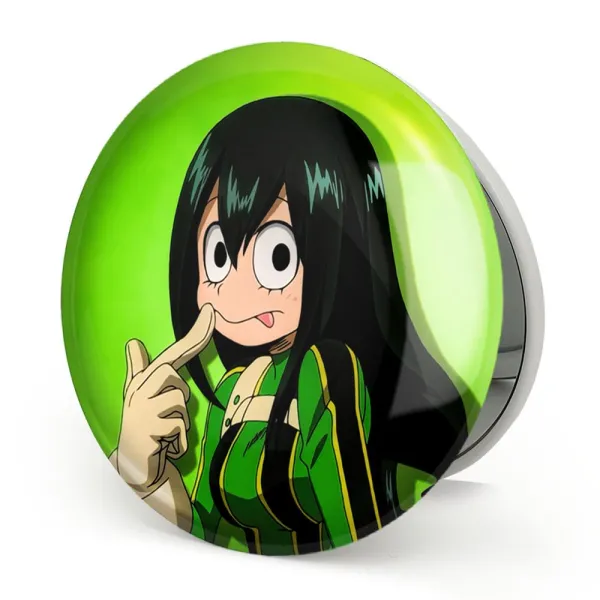 آینه های تاشو سویا اسومی انیمه آکادمی قهرمان من خندالو، از جنس پلاستیک فشرده ABS تولید شده و به رنگ سفید می باشد. یکی از آینه ها ابعاد واقعی را نشان داده و دیگری با قابلیت بزرگنمایی، جزئیات را بهتر نمایش می دهد. ابعاد هر یک از آینه ها، دایره ای به قطر 7.5 سانت می باشد که نه خیلی بزرگ و غیر قابل استفاده در کیف آرایشی ست و نه خیلی کوچک که تصویر خاصی در آن مشاهده نشود. آینه تاشو سویا اسومی انیمه آکادمی قهرمان من سایزی استاندارد و کارآمد دارد و در هر کیفی جا میگیرد. چاپ طرح بوسیله چاپگرهای دیجیتال شش رنگ با شفافیت و کیفیتی مثال زدنی بر روی یک وجه از بدنه ی آینه انجام گرفته و با روکش لمینت حرارتی پوشیده شده که در مقابل آسیب و خط و خش مقاوم بوده و کیفیت بالایی دارد. درب آینه بوسیله قفل بدنه ی آن، باز نمی ماند و کاملا بسته می شود و مناسب قرار گیری در کیف لوازم آرایش و کیف های کوچک دستی نیز هست. آینه های تاشو سویا اسومی انیمه آکادمی قهرمان من خندالو با تنوع طرحی بسیار بالا، سلیقه هر نوع مخاطبی را تامین میکند.