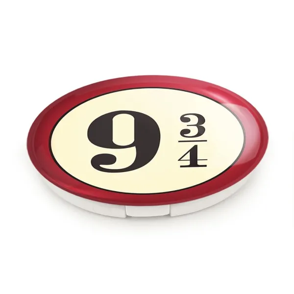 آینه های تاشو سکوی نه و سه چهارم هری پاتر Harry Potter خندالو، از جنس پلاستیک فشرده ABS تولید شده و به رنگ سفید می باشد. یکی از آینه ها ابعاد واقعی را نشان داده و دیگری با قابلیت بزرگنمایی، جزئیات را بهتر نمایش می دهد. ابعاد هر یک از آینه ها، دایره ای به قطر 7.5 سانت می باشد که نه خیلی بزرگ و غیر قابل استفاده در کیف آرایشی ست و نه خیلی کوچک که تصویر خاصی در آن مشاهده نشود. آینه تاشو سکوی نه و سه چهارم هری پاتر Harry Potter سایزی استاندارد و کارآمد دارد و در هر کیفی جا میگیرد. چاپ طرح بوسیله چاپگرهای دیجیتال شش رنگ با شفافیت و کیفیتی مثال زدنی بر روی یک وجه از بدنه ی آینه انجام گرفته و با روکش لمینت حرارتی پوشیده شده که در مقابل آسیب و خط و خش مقاوم بوده و کیفیت بالایی دارد. درب آینه بوسیله قفل بدنه ی آن، باز نمی ماند و کاملا بسته می شود و مناسب قرار گیری در کیف لوازم آرایش و کیف های کوچک دستی نیز هست. آینه های تاشو سکوی نه و سه چهارم هری پاتر Harry Potter خندالو با تنوع طرحی بسیار بالا، سلیقه هر نوع مخاطبی را تامین میکند.