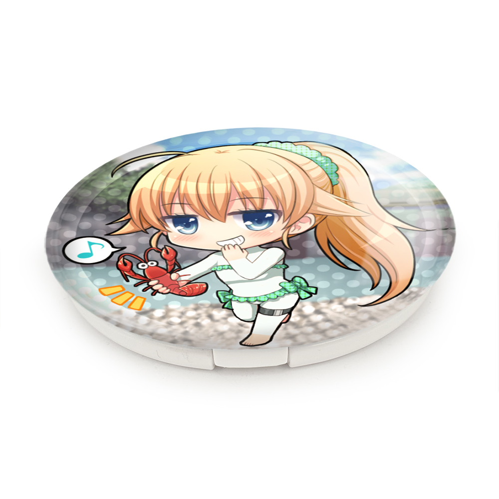 آینه های تاشو سکینه انیمه آنجل بیتس خندالو، از جنس پلاستیک فشرده ABS تولید شده و به رنگ سفید می باشد. یکی از آینه ها ابعاد واقعی را نشان داده و دیگری با قابلیت بزرگنمایی، جزئیات را بهتر نمایش می دهد. ابعاد هر یک از آینه ها، دایره ای به قطر 7.5 سانت می باشد که نه خیلی بزرگ و غیر قابل استفاده در کیف آرایشی ست و نه خیلی کوچک که تصویر خاصی در آن مشاهده نشود. آینه تاشو سکینه انیمه آنجل بیتس سایزی استاندارد و کارآمد دارد و در هر کیفی جا میگیرد. چاپ طرح بوسیله چاپگرهای دیجیتال شش رنگ با شفافیت و کیفیتی مثال زدنی بر روی یک وجه از بدنه ی آینه انجام گرفته و با روکش لمینت حرارتی پوشیده شده که در مقابل آسیب و خط و خش مقاوم بوده و کیفیت بالایی دارد. درب آینه بوسیله قفل بدنه ی آن، باز نمی ماند و کاملا بسته می شود و مناسب قرار گیری در کیف لوازم آرایش و کیف های کوچک دستی نیز هست. آینه های تاشو سکینه انیمه آنجل بیتس خندالو با تنوع طرحی بسیار بالا، سلیقه هر نوع مخاطبی را تامین میکند.