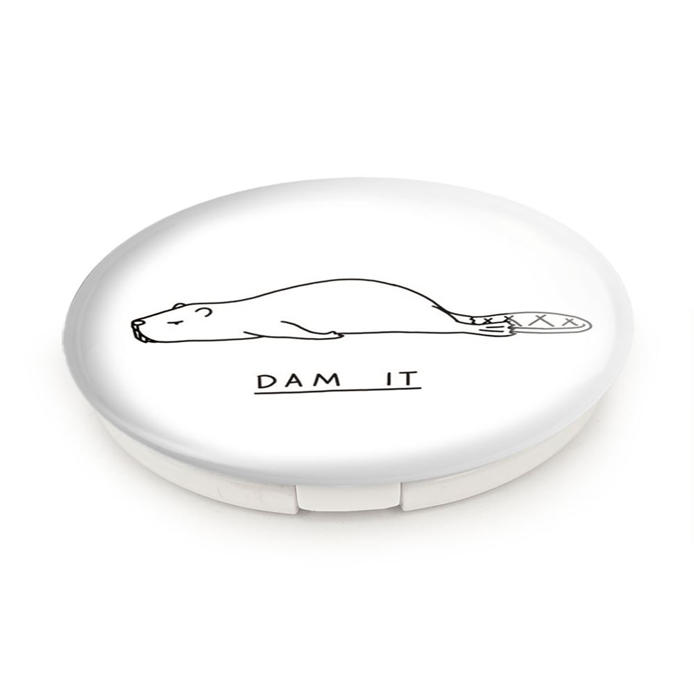 آینه های تاشو سگ آبی خندالو، از جنس پلاستیک فشرده ABS تولید شده و به رنگ سفید می باشد. یکی از آینه ها ابعاد واقعی را نشان داده و دیگری با قابلیت بزرگنمایی، جزئیات را بهتر نمایش می دهد. ابعاد هر یک از آینه ها، دایره ای به قطر 7.5 سانت می باشد که نه خیلی بزرگ و غیر قابل استفاده در کیف آرایشی ست و نه خیلی کوچک که تصویر خاصی در آن مشاهده نشود. آینه تاشو سگ آبی سایزی استاندارد و کارآمد دارد و در هر کیفی جا میگیرد. چاپ طرح بوسیله چاپگرهای دیجیتال شش رنگ با شفافیت و کیفیتی مثال زدنی بر روی یک وجه از بدنه ی آینه انجام گرفته و با روکش لمینت حرارتی پوشیده شده که در مقابل آسیب و خط و خش مقاوم بوده و کیفیت بالایی دارد. درب آینه بوسیله قفل بدنه ی آن، باز نمی ماند و کاملا بسته می شود و مناسب قرار گیری در کیف لوازم آرایش و کیف های کوچک دستی نیز هست. آینه های تاشو سگ آبی خندالو با تنوع طرحی بسیار بالا، سلیقه هر نوع مخاطبی را تامین میکند.