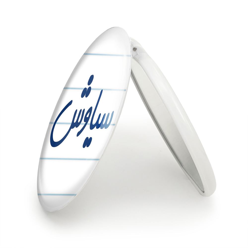 آینه های تاشو سیاوش خندالو، از جنس پلاستیک فشرده ABS تولید شده و به رنگ سفید می باشد. یکی از آینه ها ابعاد واقعی را نشان داده و دیگری با قابلیت بزرگنمایی، جزئیات را بهتر نمایش می دهد. ابعاد هر یک از آینه ها، دایره ای به قطر 7.5 سانت می باشد که نه خیلی بزرگ و غیر قابل استفاده در کیف آرایشی ست و نه خیلی کوچک که تصویر خاصی در آن مشاهده نشود. آینه تاشو سیاوش سایزی استاندارد و کارآمد دارد و در هر کیفی جا میگیرد. چاپ طرح بوسیله چاپگرهای دیجیتال شش رنگ با شفافیت و کیفیتی مثال زدنی بر روی یک وجه از بدنه ی آینه انجام گرفته و با روکش لمینت حرارتی پوشیده شده که در مقابل آسیب و خط و خش مقاوم بوده و کیفیت بالایی دارد. درب آینه بوسیله قفل بدنه ی آن، باز نمی ماند و کاملا بسته می شود و مناسب قرار گیری در کیف لوازم آرایش و کیف های کوچک دستی نیز هست. آینه های تاشو سیاوش خندالو با تنوع طرحی بسیار بالا، سلیقه هر نوع مخاطبی را تامین میکند.