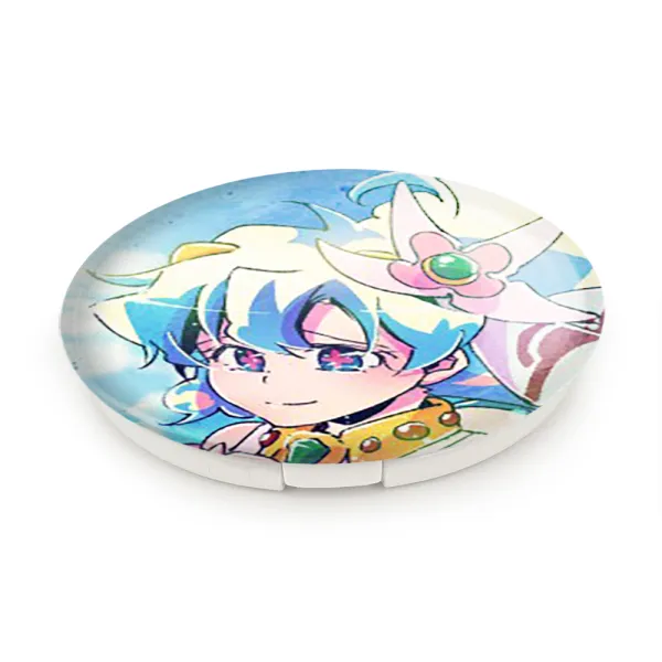 آینه های تاشو سیمون انیمه گورن لاگان خندالو، از جنس پلاستیک فشرده ABS تولید شده و به رنگ سفید می باشد. یکی از آینه ها ابعاد واقعی را نشان داده و دیگری با قابلیت بزرگنمایی، جزئیات را بهتر نمایش می دهد. ابعاد هر یک از آینه ها، دایره ای به قطر 7.5 سانت می باشد که نه خیلی بزرگ و غیر قابل استفاده در کیف آرایشی ست و نه خیلی کوچک که تصویر خاصی در آن مشاهده نشود. آینه تاشو سیمون انیمه گورن لاگان سایزی استاندارد و کارآمد دارد و در هر کیفی جا میگیرد. چاپ طرح بوسیله چاپگرهای دیجیتال شش رنگ با شفافیت و کیفیتی مثال زدنی بر روی یک وجه از بدنه ی آینه انجام گرفته و با روکش لمینت حرارتی پوشیده شده که در مقابل آسیب و خط و خش مقاوم بوده و کیفیت بالایی دارد. درب آینه بوسیله قفل بدنه ی آن، باز نمی ماند و کاملا بسته می شود و مناسب قرار گیری در کیف لوازم آرایش و کیف های کوچک دستی نیز هست. آینه های تاشو سیمون انیمه گورن لاگان خندالو با تنوع طرحی بسیار بالا، سلیقه هر نوع مخاطبی را تامین میکند.