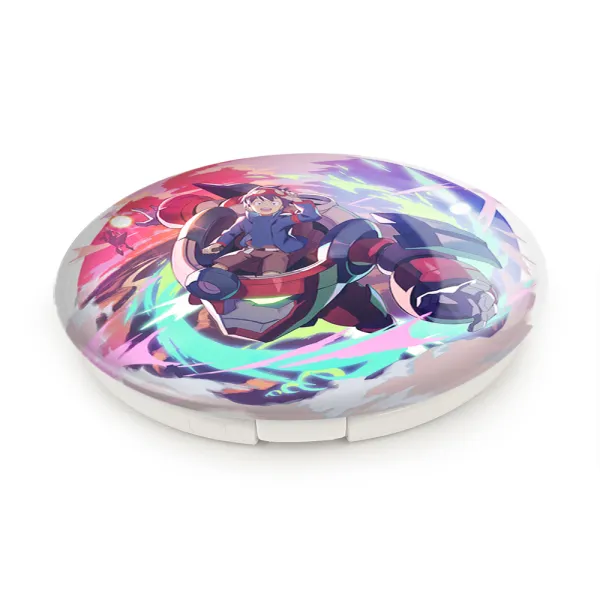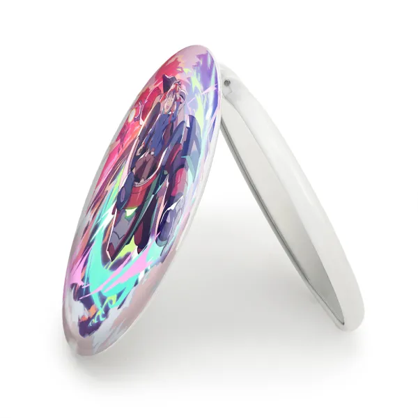 آینه های تاشو سیمون انیمه گورن لاگان خندالو، از جنس پلاستیک فشرده ABS تولید شده و به رنگ سفید می باشد. یکی از آینه ها ابعاد واقعی را نشان داده و دیگری با قابلیت بزرگنمایی، جزئیات را بهتر نمایش می دهد. ابعاد هر یک از آینه ها، دایره ای به قطر 7.5 سانت می باشد که نه خیلی بزرگ و غیر قابل استفاده در کیف آرایشی ست و نه خیلی کوچک که تصویر خاصی در آن مشاهده نشود. آینه تاشو سیمون انیمه گورن لاگان سایزی استاندارد و کارآمد دارد و در هر کیفی جا میگیرد. چاپ طرح بوسیله چاپگرهای دیجیتال شش رنگ با شفافیت و کیفیتی مثال زدنی بر روی یک وجه از بدنه ی آینه انجام گرفته و با روکش لمینت حرارتی پوشیده شده که در مقابل آسیب و خط و خش مقاوم بوده و کیفیت بالایی دارد. درب آینه بوسیله قفل بدنه ی آن، باز نمی ماند و کاملا بسته می شود و مناسب قرار گیری در کیف لوازم آرایش و کیف های کوچک دستی نیز هست. آینه های تاشو سیمون انیمه گورن لاگان خندالو با تنوع طرحی بسیار بالا، سلیقه هر نوع مخاطبی را تامین میکند.