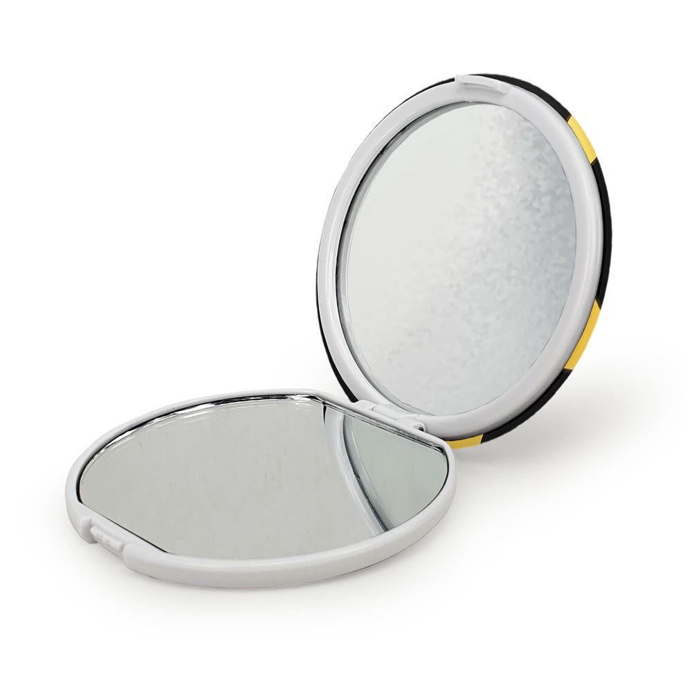 آینه های تاشو سیمپسون ها The Simpsons خندالو، از جنس پلاستیک فشرده ABS تولید شده و به رنگ سفید می باشد. یکی از آینه ها ابعاد واقعی را نشان داده و دیگری با قابلیت بزرگنمایی، جزئیات را بهتر نمایش می دهد. ابعاد هر یک از آینه ها، دایره ای به قطر 7.5 سانت می باشد که نه خیلی بزرگ و غیر قابل استفاده در کیف آرایشی ست و نه خیلی کوچک که تصویر خاصی در آن مشاهده نشود. آینه تاشو سیمپسون ها The Simpsons سایزی استاندارد و کارآمد دارد و در هر کیفی جا میگیرد. چاپ طرح بوسیله چاپگرهای دیجیتال شش رنگ با شفافیت و کیفیتی مثال زدنی بر روی یک وجه از بدنه ی آینه انجام گرفته و با روکش لمینت حرارتی پوشیده شده که در مقابل آسیب و خط و خش مقاوم بوده و کیفیت بالایی دارد. درب آینه بوسیله قفل بدنه ی آن، باز نمی ماند و کاملا بسته می شود و مناسب قرار گیری در کیف لوازم آرایش و کیف های کوچک دستی نیز هست. آینه های تاشو سیمپسون ها The Simpsons خندالو با تنوع طرحی بسیار بالا، سلیقه هر نوع مخاطبی را تامین میکند.