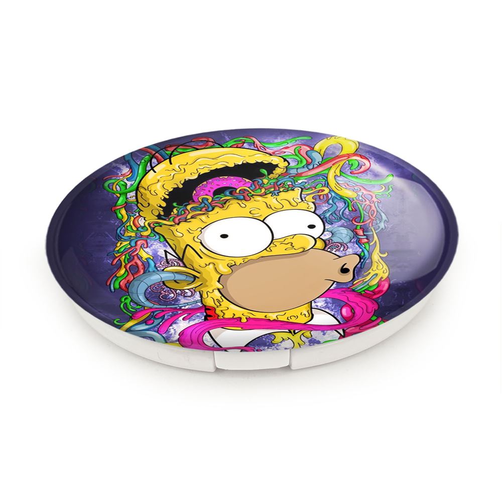 آینه های تاشو سیمپسون ها The Simpsons خندالو، از جنس پلاستیک فشرده ABS تولید شده و به رنگ سفید می باشد. یکی از آینه ها ابعاد واقعی را نشان داده و دیگری با قابلیت بزرگنمایی، جزئیات را بهتر نمایش می دهد. ابعاد هر یک از آینه ها، دایره ای به قطر 7.5 سانت می باشد که نه خیلی بزرگ و غیر قابل استفاده در کیف آرایشی ست و نه خیلی کوچک که تصویر خاصی در آن مشاهده نشود. آینه تاشو سیمپسون ها The Simpsons سایزی استاندارد و کارآمد دارد و در هر کیفی جا میگیرد. چاپ طرح بوسیله چاپگرهای دیجیتال شش رنگ با شفافیت و کیفیتی مثال زدنی بر روی یک وجه از بدنه ی آینه انجام گرفته و با روکش لمینت حرارتی پوشیده شده که در مقابل آسیب و خط و خش مقاوم بوده و کیفیت بالایی دارد. درب آینه بوسیله قفل بدنه ی آن، باز نمی ماند و کاملا بسته می شود و مناسب قرار گیری در کیف لوازم آرایش و کیف های کوچک دستی نیز هست. آینه های تاشو سیمپسون ها The Simpsons خندالو با تنوع طرحی بسیار بالا، سلیقه هر نوع مخاطبی را تامین میکند.