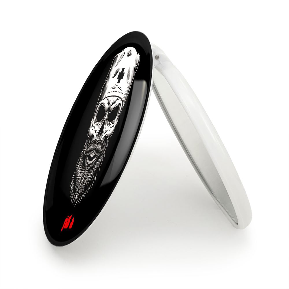 آینه های تاشو شب های مافیا دکتر خندالو، از جنس پلاستیک فشرده ABS تولید شده و به رنگ سفید می باشد. یکی از آینه ها ابعاد واقعی را نشان داده و دیگری با قابلیت بزرگنمایی، جزئیات را بهتر نمایش می دهد. ابعاد هر یک از آینه ها، دایره ای به قطر 7.5 سانت می باشد که نه خیلی بزرگ و غیر قابل استفاده در کیف آرایشی ست و نه خیلی کوچک که تصویر خاصی در آن مشاهده نشود. آینه تاشو شب های مافیا دکتر سایزی استاندارد و کارآمد دارد و در هر کیفی جا میگیرد. چاپ طرح بوسیله چاپگرهای دیجیتال شش رنگ با شفافیت و کیفیتی مثال زدنی بر روی یک وجه از بدنه ی آینه انجام گرفته و با روکش لمینت حرارتی پوشیده شده که در مقابل آسیب و خط و خش مقاوم بوده و کیفیت بالایی دارد. درب آینه بوسیله قفل بدنه ی آن، باز نمی ماند و کاملا بسته می شود و مناسب قرار گیری در کیف لوازم آرایش و کیف های کوچک دستی نیز هست. آینه های تاشو شب های مافیا دکتر خندالو با تنوع طرحی بسیار بالا، سلیقه هر نوع مخاطبی را تامین میکند.