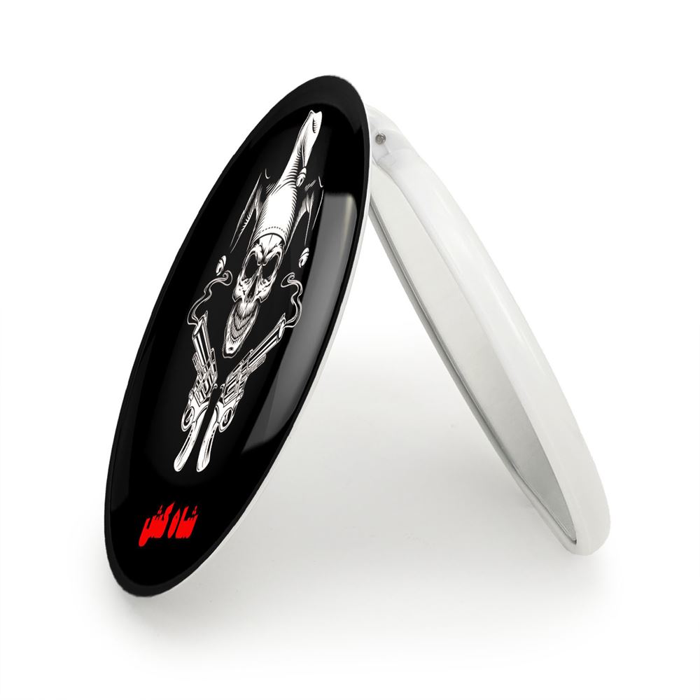 آینه های تاشو شب های مافیا شاهکش خندالو، از جنس پلاستیک فشرده ABS تولید شده و به رنگ سفید می باشد. یکی از آینه ها ابعاد واقعی را نشان داده و دیگری با قابلیت بزرگنمایی، جزئیات را بهتر نمایش می دهد. ابعاد هر یک از آینه ها، دایره ای به قطر 7.5 سانت می باشد که نه خیلی بزرگ و غیر قابل استفاده در کیف آرایشی ست و نه خیلی کوچک که تصویر خاصی در آن مشاهده نشود. آینه تاشو شب های مافیا شاهکش سایزی استاندارد و کارآمد دارد و در هر کیفی جا میگیرد. چاپ طرح بوسیله چاپگرهای دیجیتال شش رنگ با شفافیت و کیفیتی مثال زدنی بر روی یک وجه از بدنه ی آینه انجام گرفته و با روکش لمینت حرارتی پوشیده شده که در مقابل آسیب و خط و خش مقاوم بوده و کیفیت بالایی دارد. درب آینه بوسیله قفل بدنه ی آن، باز نمی ماند و کاملا بسته می شود و مناسب قرار گیری در کیف لوازم آرایش و کیف های کوچک دستی نیز هست. آینه های تاشو شب های مافیا شاهکش خندالو با تنوع طرحی بسیار بالا، سلیقه هر نوع مخاطبی را تامین میکند.