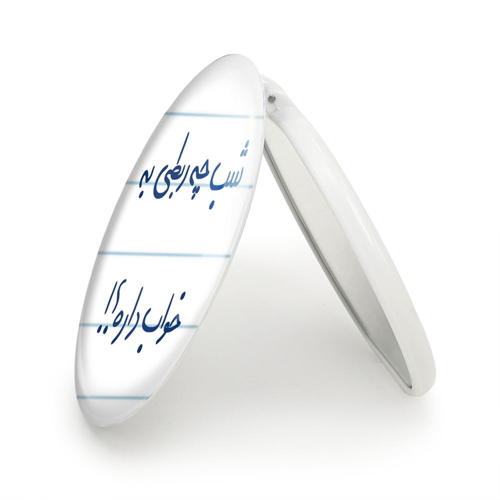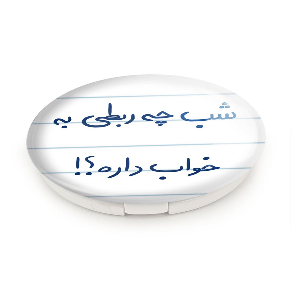 آینه های تاشو شب چه ربطی به خواب داره خندالو، از جنس پلاستیک فشرده ABS تولید شده و به رنگ سفید می باشد. یکی از آینه ها ابعاد واقعی را نشان داده و دیگری با قابلیت بزرگنمایی، جزئیات را بهتر نمایش می دهد. ابعاد هر یک از آینه ها، دایره ای به قطر 7.5 سانت می باشد که نه خیلی بزرگ و غیر قابل استفاده در کیف آرایشی ست و نه خیلی کوچک که تصویر خاصی در آن مشاهده نشود. آینه تاشو شب چه ربطی به خواب داره سایزی استاندارد و کارآمد دارد و در هر کیفی جا میگیرد. چاپ طرح بوسیله چاپگرهای دیجیتال شش رنگ با شفافیت و کیفیتی مثال زدنی بر روی یک وجه از بدنه ی آینه انجام گرفته و با روکش لمینت حرارتی پوشیده شده که در مقابل آسیب و خط و خش مقاوم بوده و کیفیت بالایی دارد. درب آینه بوسیله قفل بدنه ی آن، باز نمی ماند و کاملا بسته می شود و مناسب قرار گیری در کیف لوازم آرایش و کیف های کوچک دستی نیز هست. آینه های تاشو شب چه ربطی به خواب داره خندالو با تنوع طرحی بسیار بالا، سلیقه هر نوع مخاطبی را تامین میکند.