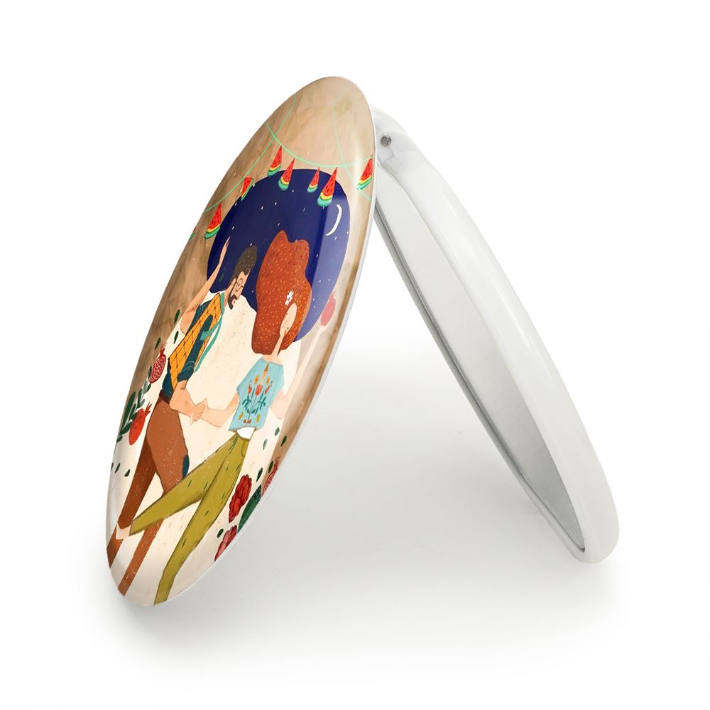 آینه های تاشو شب یلدا خندالو، از جنس پلاستیک فشرده ABS تولید شده و به رنگ سفید می باشد. یکی از آینه ها ابعاد واقعی را نشان داده و دیگری با قابلیت بزرگنمایی، جزئیات را بهتر نمایش می دهد.