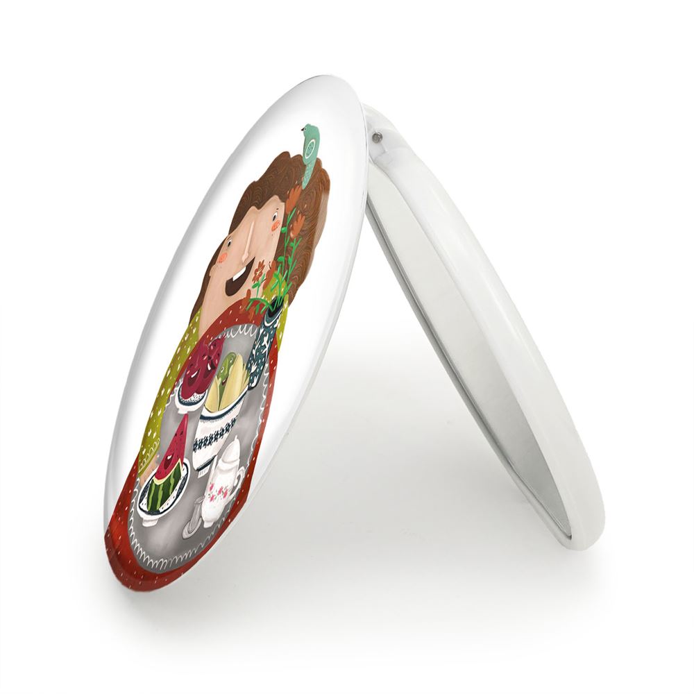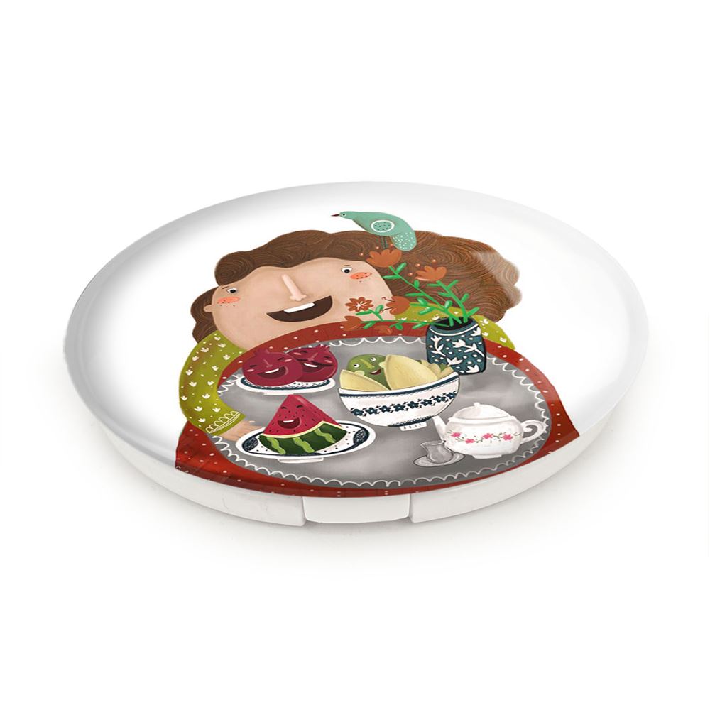 آینه های تاشو شب یلدا خندالو، از جنس پلاستیک فشرده ABS تولید شده و به رنگ سفید می باشد. یکی از آینه ها ابعاد واقعی را نشان داده و دیگری با قابلیت بزرگنمایی، جزئیات را بهتر نمایش می دهد.