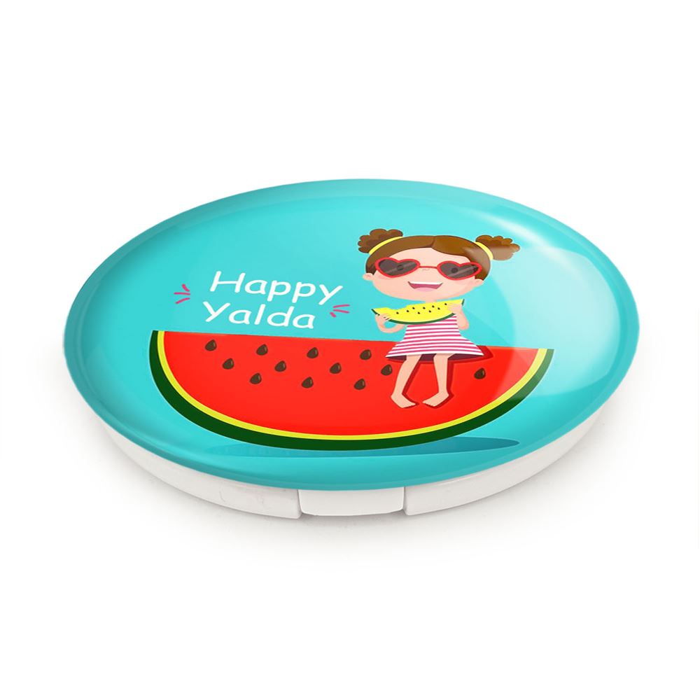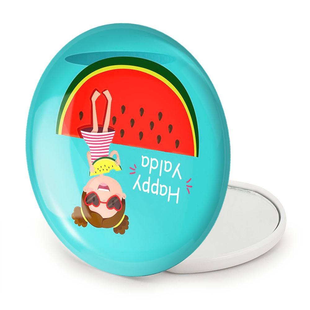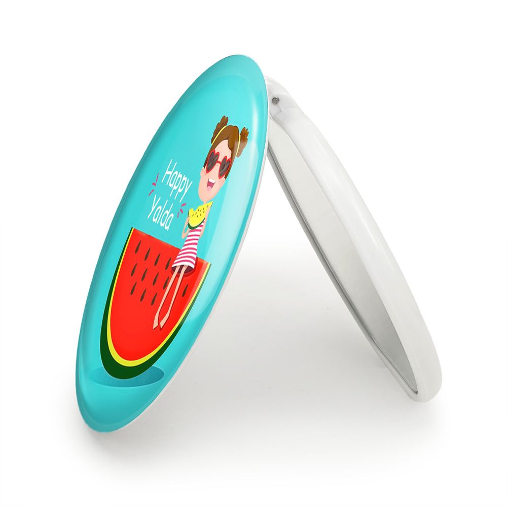 آینه های تاشو شب یلدا خندالو، از جنس پلاستیک فشرده ABS تولید شده و به رنگ سفید می باشد. یکی از آینه ها ابعاد واقعی را نشان داده و دیگری با قابلیت بزرگنمایی، جزئیات را بهتر نمایش می دهد.