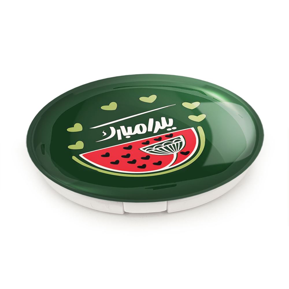 آینه های تاشو شب یلدا خندالو، از جنس پلاستیک فشرده ABS تولید شده و به رنگ سفید می باشد. یکی از آینه ها ابعاد واقعی را نشان داده و دیگری با قابلیت بزرگنمایی، جزئیات را بهتر نمایش می دهد.