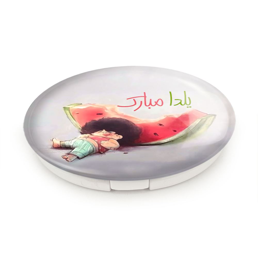 آینه های تاشو شب یلدا خندالو، از جنس پلاستیک فشرده ABS تولید شده و به رنگ سفید می باشد. یکی از آینه ها ابعاد واقعی را نشان داده و دیگری با قابلیت بزرگنمایی، جزئیات را بهتر نمایش می دهد.
