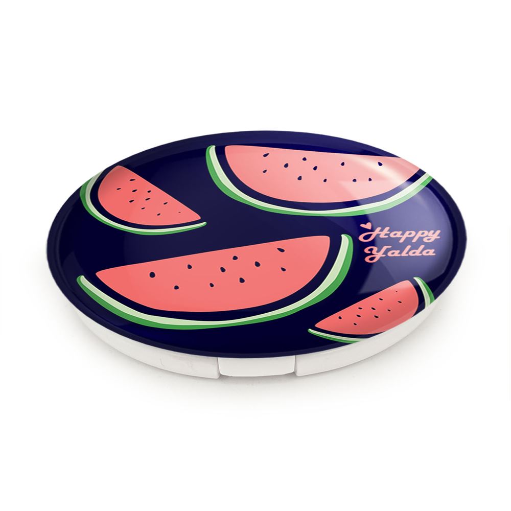 آینه های تاشو شب یلدا خندالو، از جنس پلاستیک فشرده ABS تولید شده و به رنگ سفید می باشد. یکی از آینه ها ابعاد واقعی را نشان داده و دیگری با قابلیت بزرگنمایی، جزئیات را بهتر نمایش می دهد.