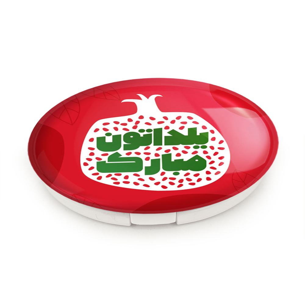 آینه های تاشو شب یلدا خندالو، از جنس پلاستیک فشرده ABS تولید شده و به رنگ سفید می باشد. یکی از آینه ها ابعاد واقعی را نشان داده و دیگری با قابلیت بزرگنمایی، جزئیات را بهتر نمایش می دهد.
